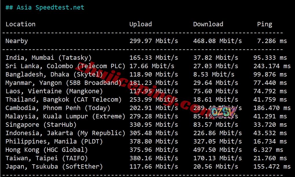 speedtest部分亚洲节点的测试数据: