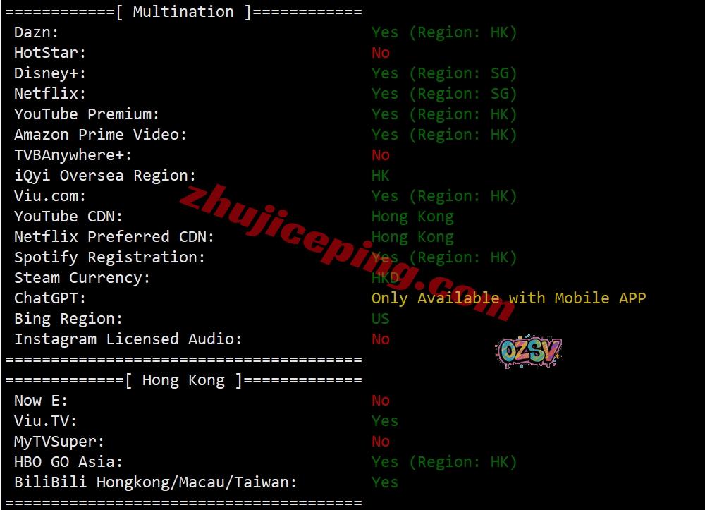 部分流媒体解锁测试: