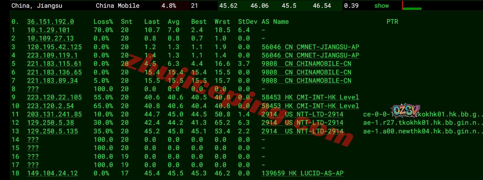 网络方面:电信和联通的去和回都是一样,基本上都是走NTT去香港或者再绕一下日本,移动则是双向CMI直连。