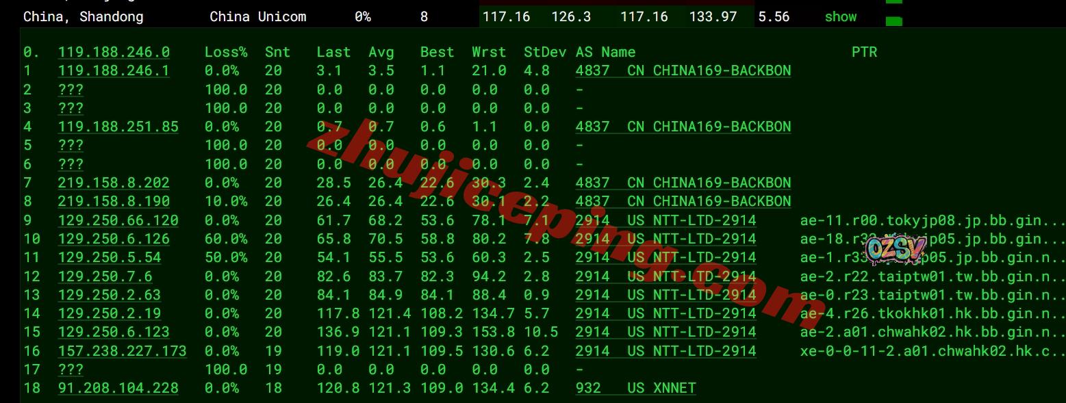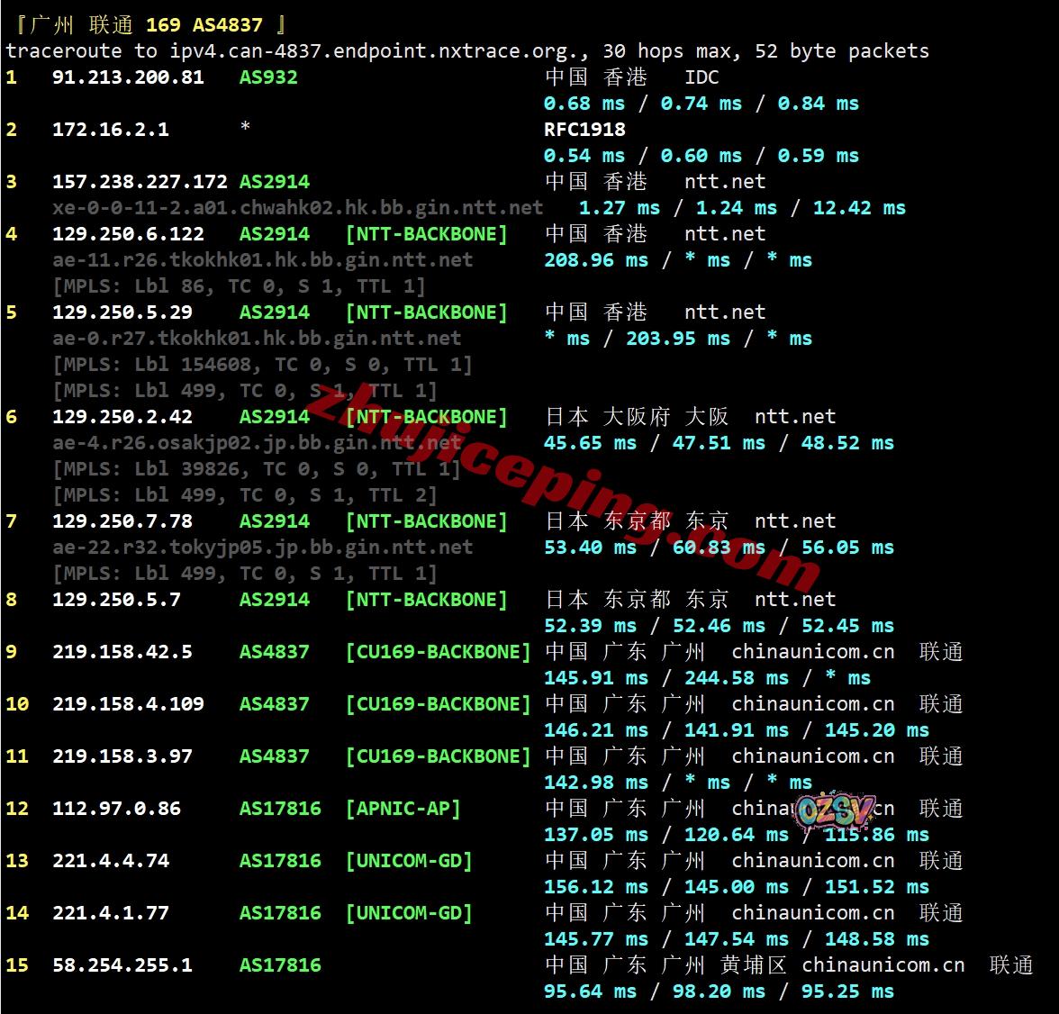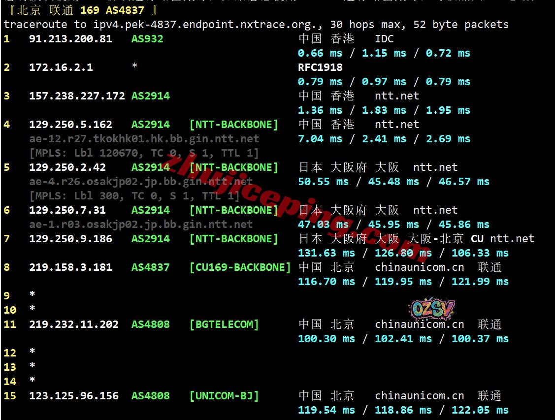 联通回程:香港NTT先去日本然后回国内