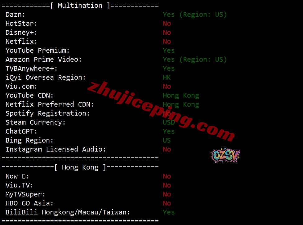 部分流媒体解锁测试: