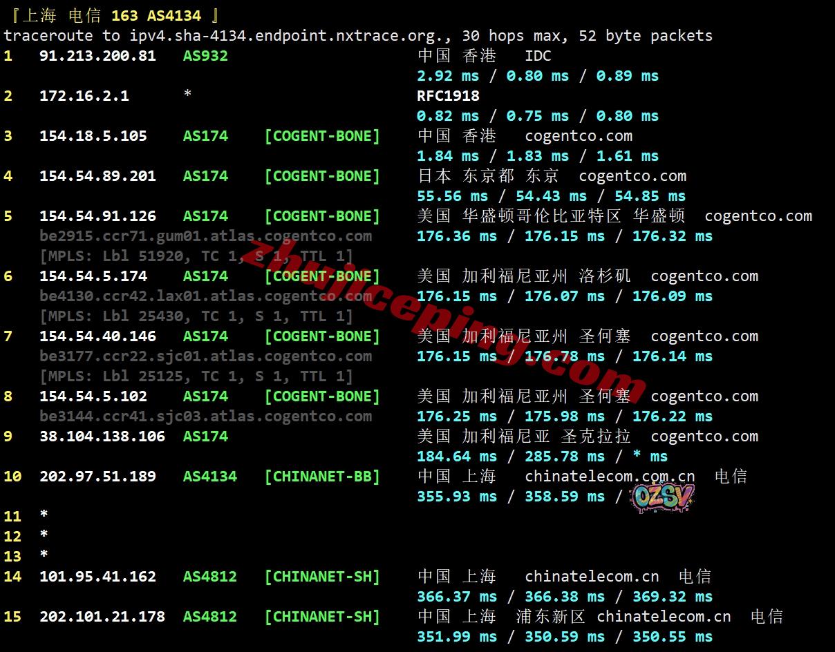 电信回程:走cogent先去日本然后去美国西海岸然后回国内