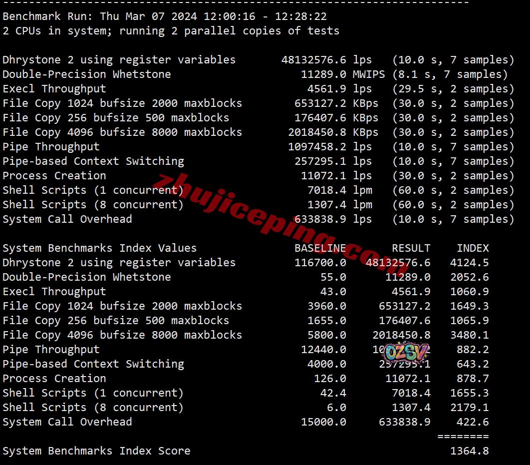 VPS性能测试,部分数据大致如下:
