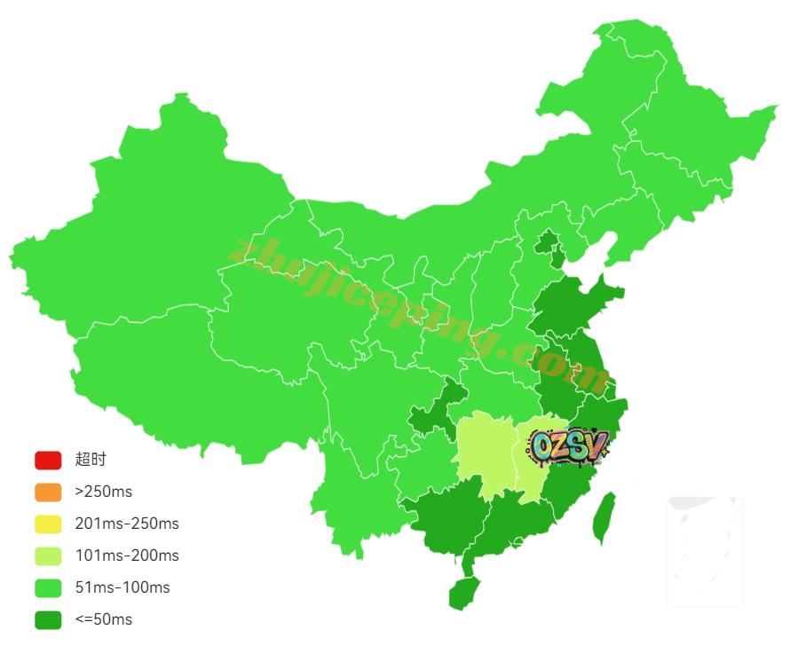 大陆境内三网多节点的延迟测试数据: