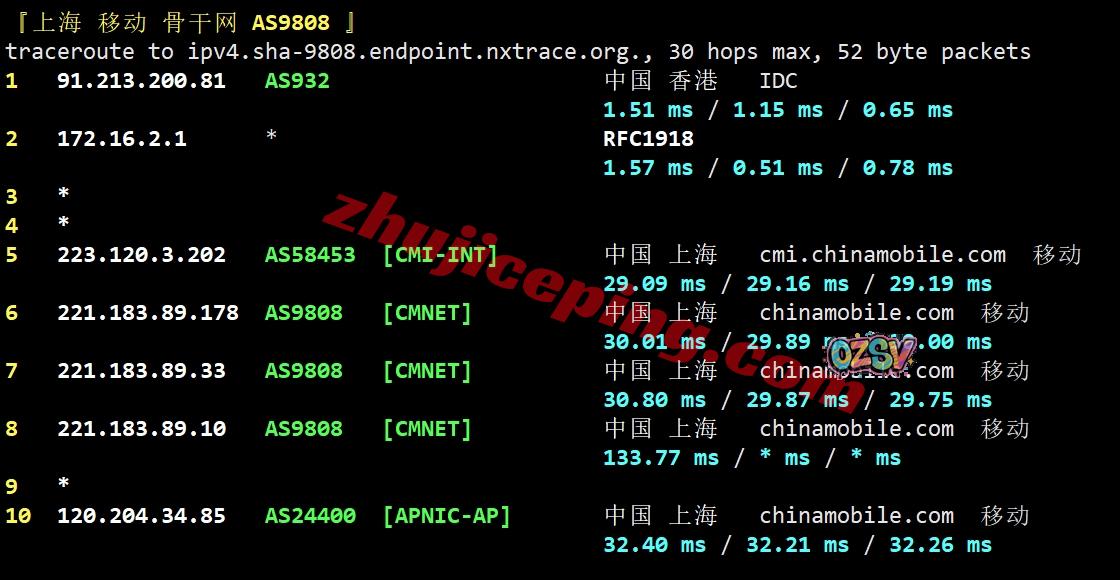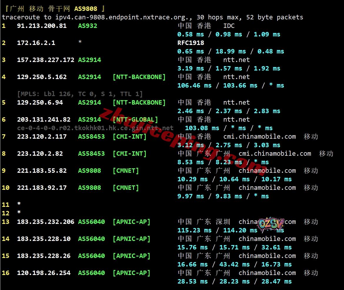 移动回程:香港NTT接香港CMI直连内地