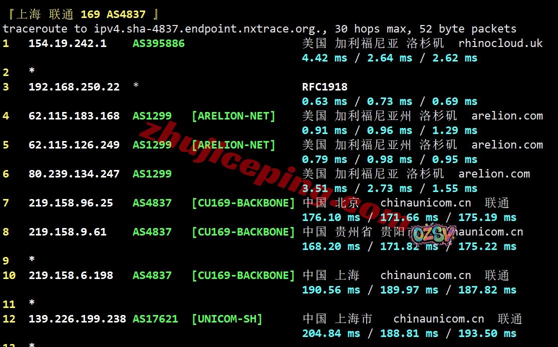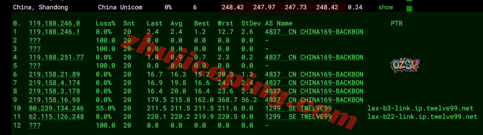 联通去程:直连联通洛杉矶节点然后走twelve99去机房