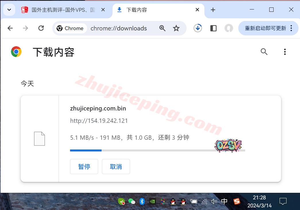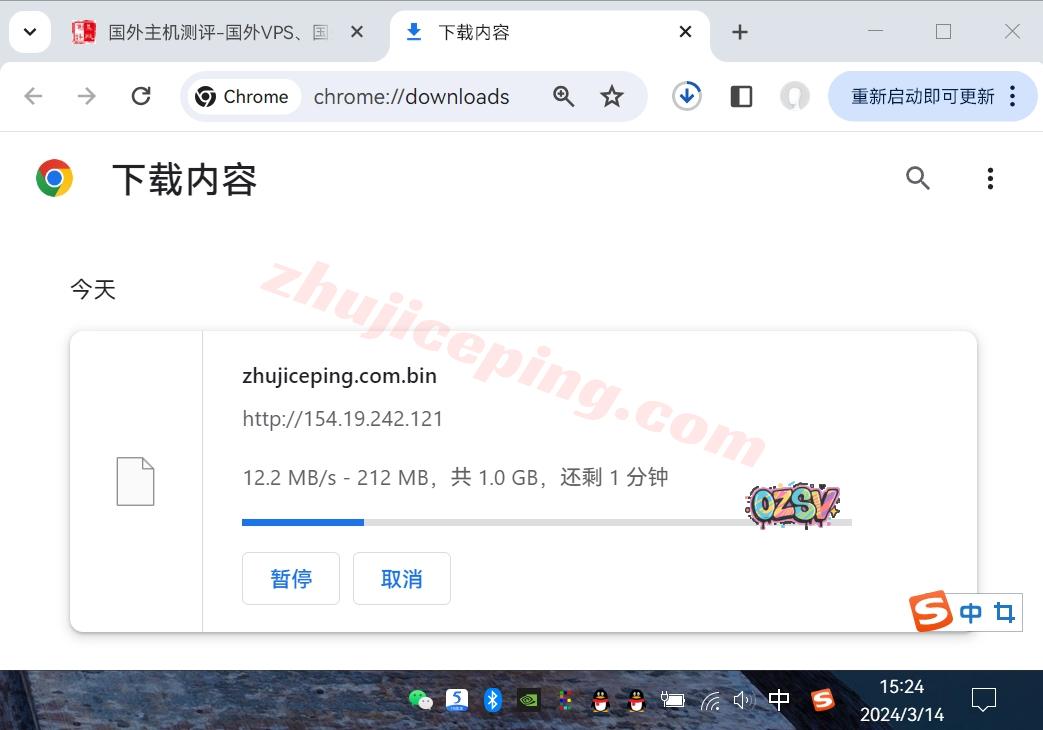 存放在测试VPS上的文件,广州联通家宽,直接用浏览器下载,大致速度如下: