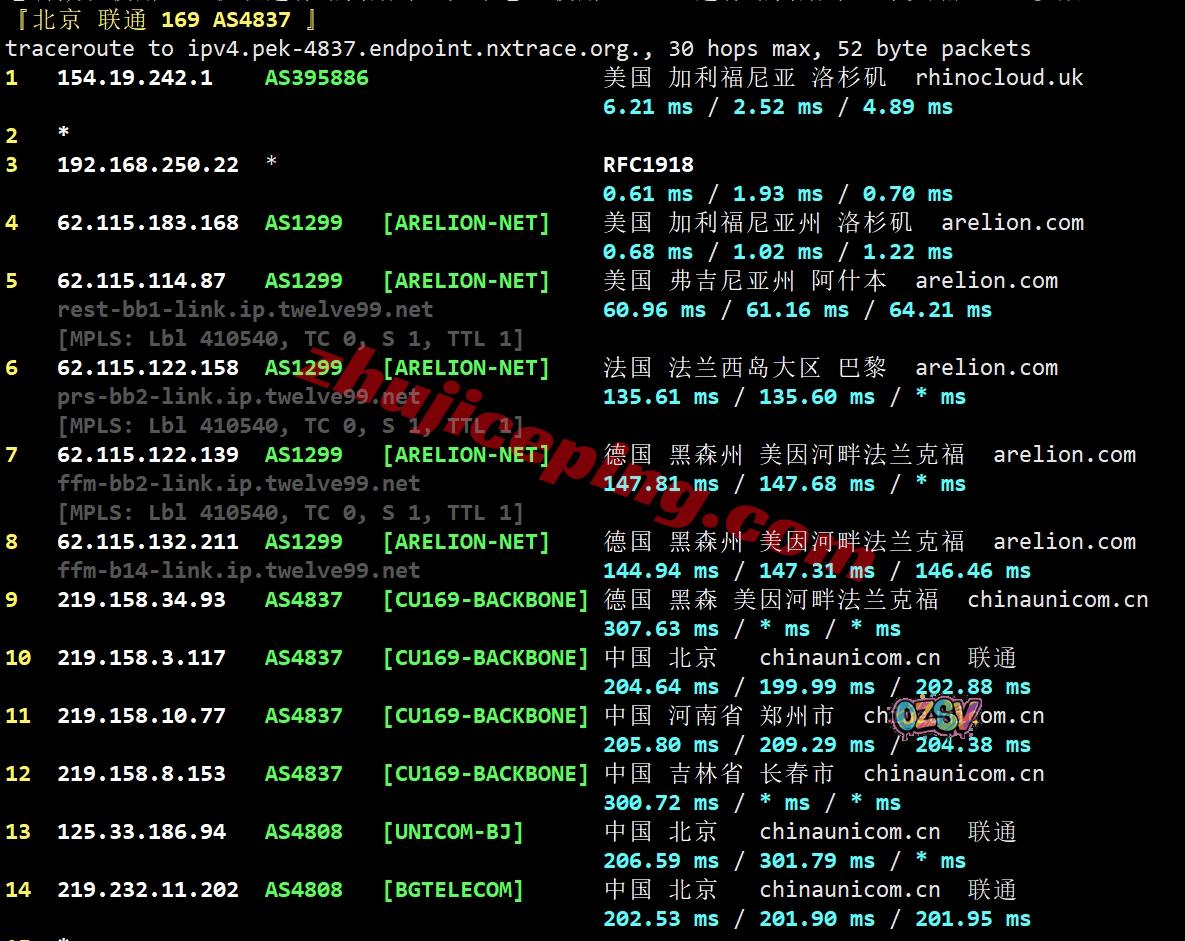 北京方向:走twelve99去美国东海岸出海去法国、德国,从联通德国法兰克福节点直连回国
