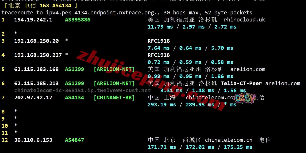 北京方向:走twelve99,然后从电信与twelve99在洛杉矶的peer出来直连回国