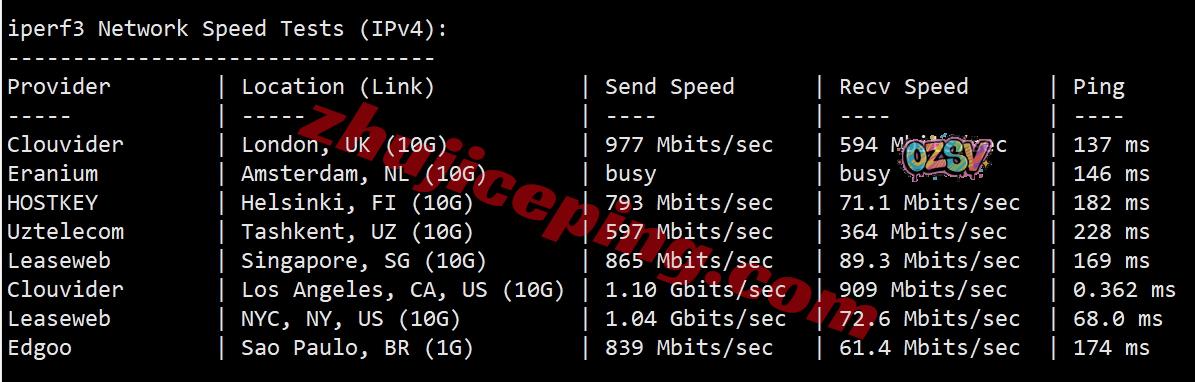 iperf3测试,几个欧美节点,IPv4网络,大致数据: