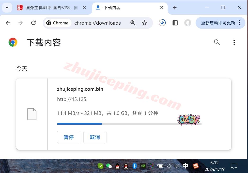 存放在测试VPS上面的文件,广州联通家宽直接用浏览器下载,看看速度吧: