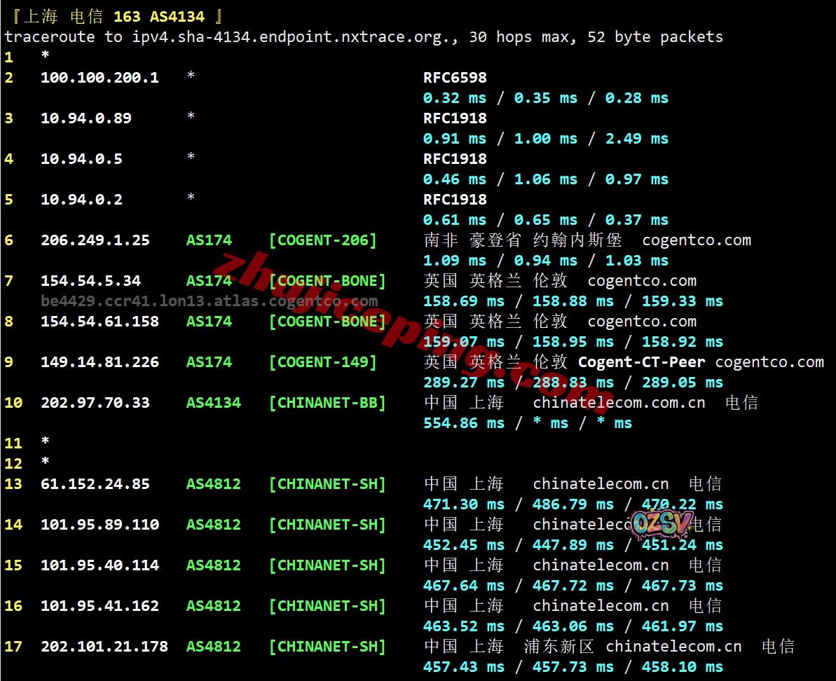 上海方向:走cogent去英国,从电信与cogent在伦敦的peer直连回国