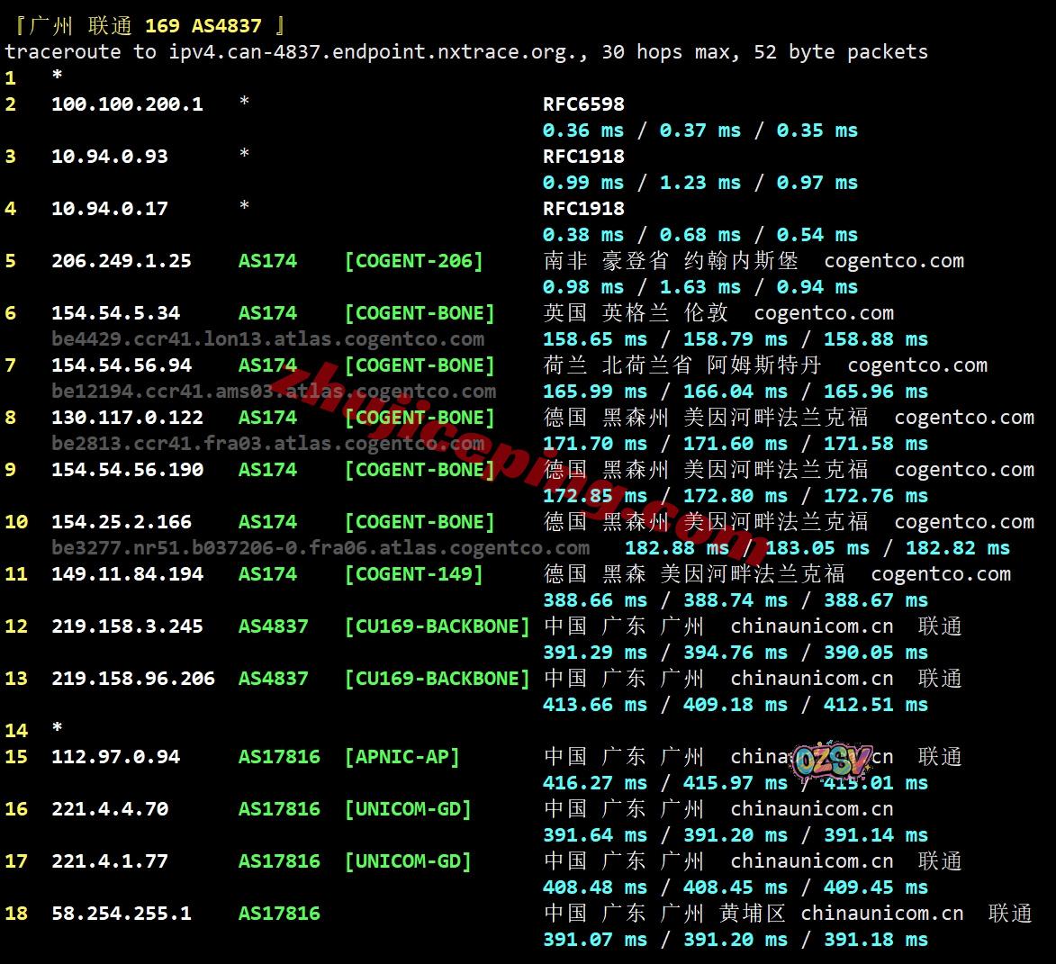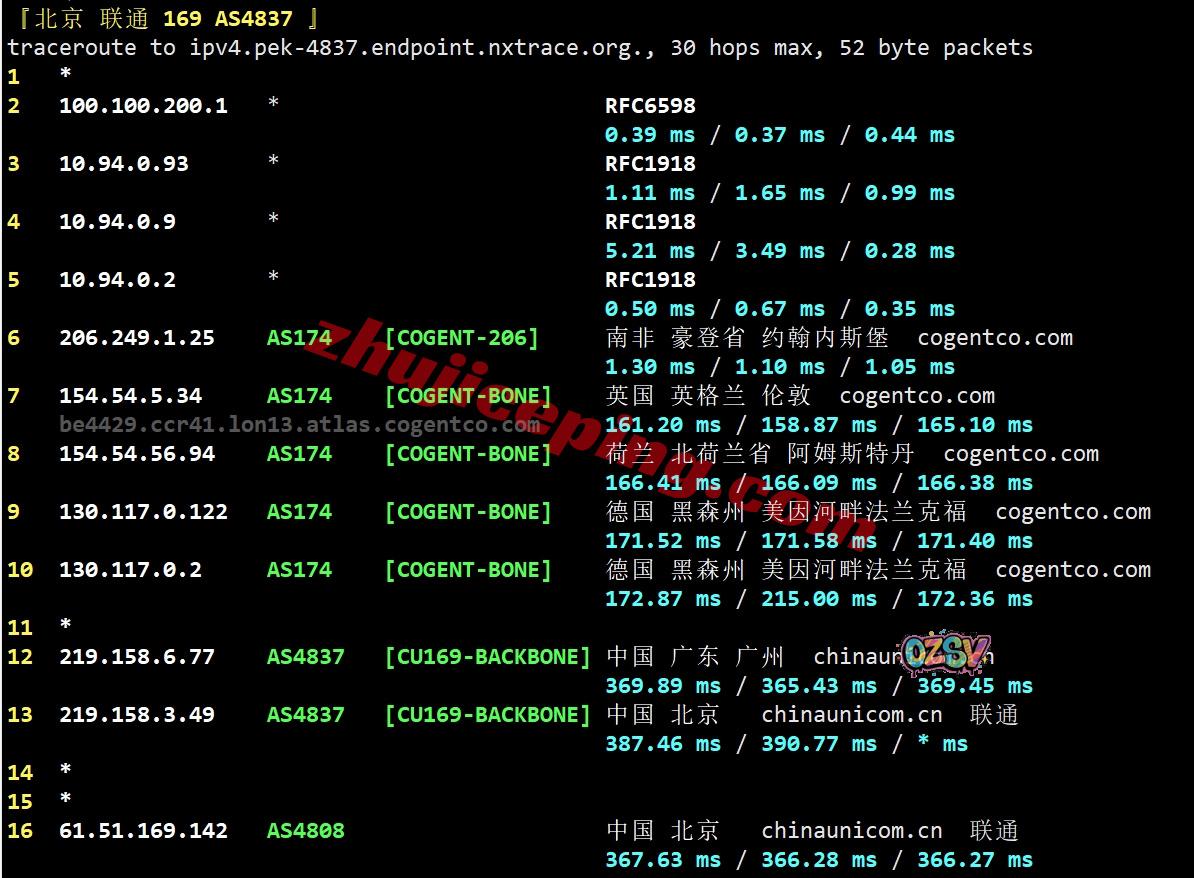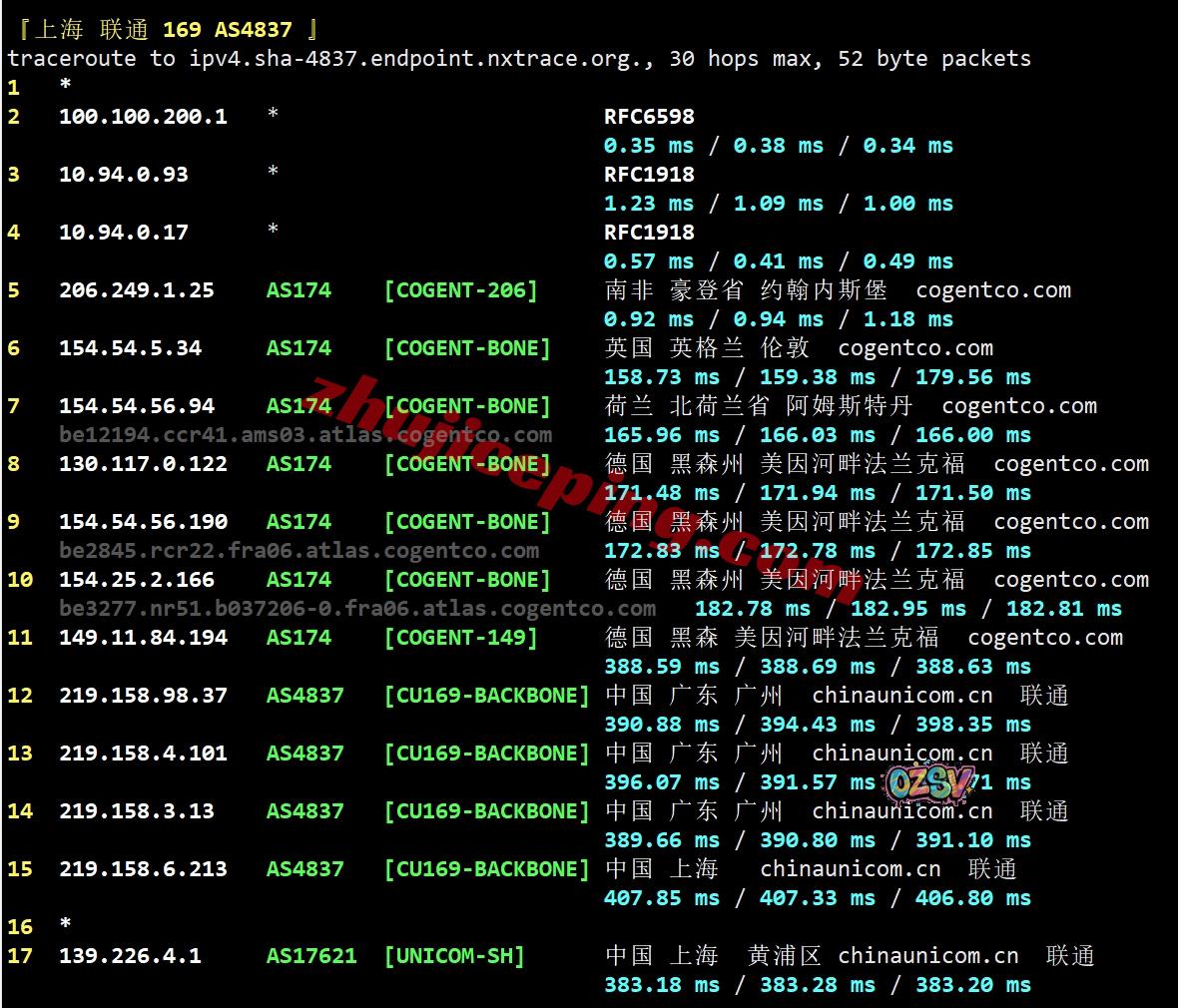 联通回程:走cogent经过英国、荷兰、德国,从法兰克福出海回国