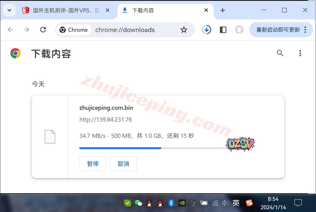 存放在测试云服务器上面的文件,广州联通家宽直接用浏览器下载,大致速度(我也不知道为啥这么好):