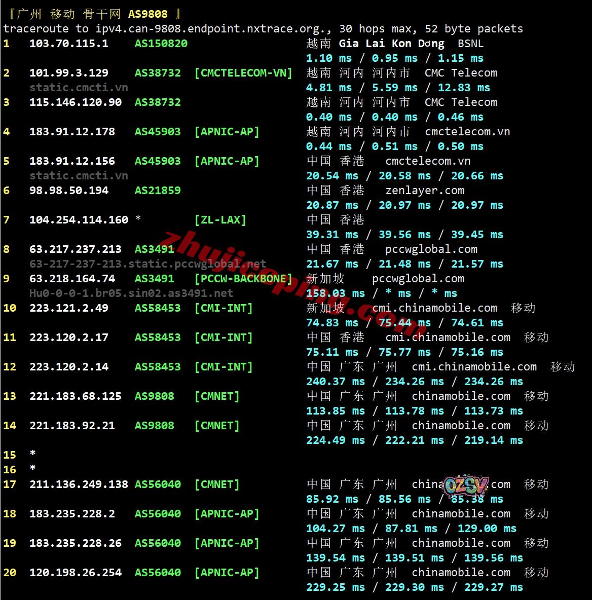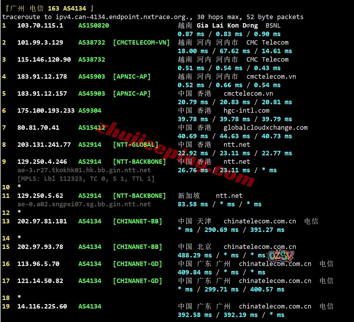 电信去程:直连电信洛杉矶节点然后接pccw去香港 再接越南cmctelecom