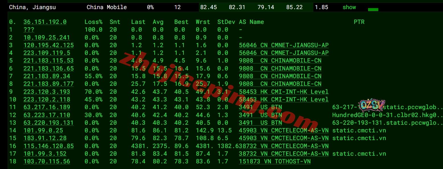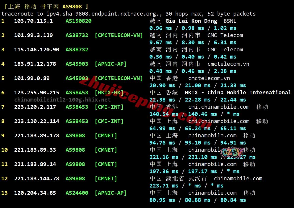 联通去程:联通骨干接NTT先去日本东京然后回香港再接越南cmctelecom