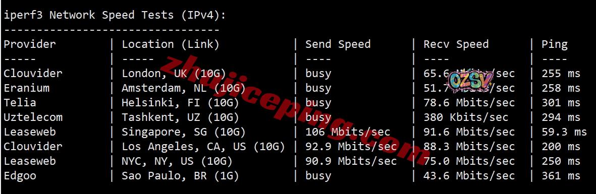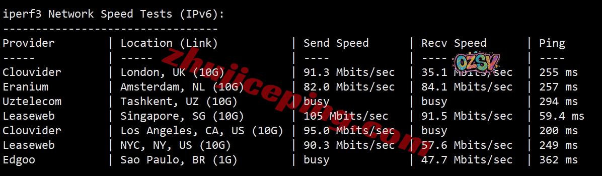 iperf3,几个欧美节点,IPv6环境下,大致效果如下: