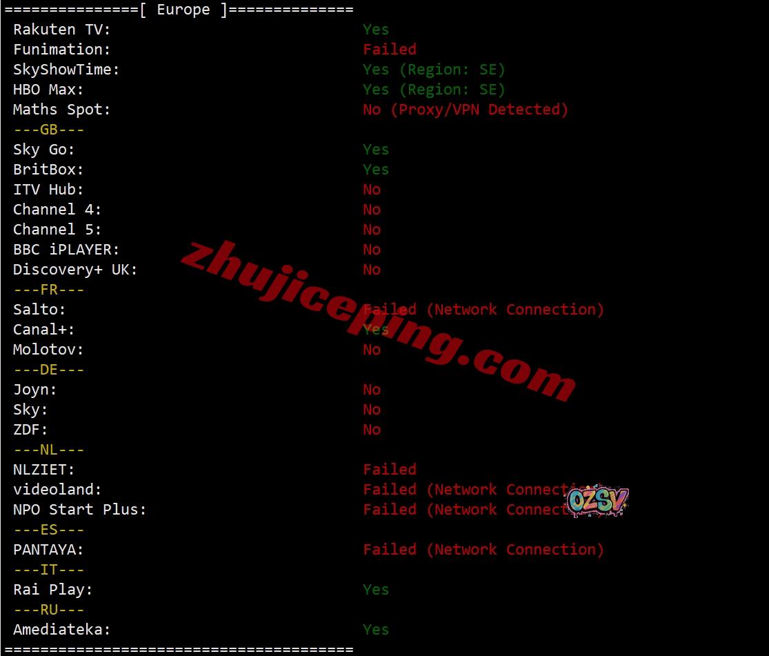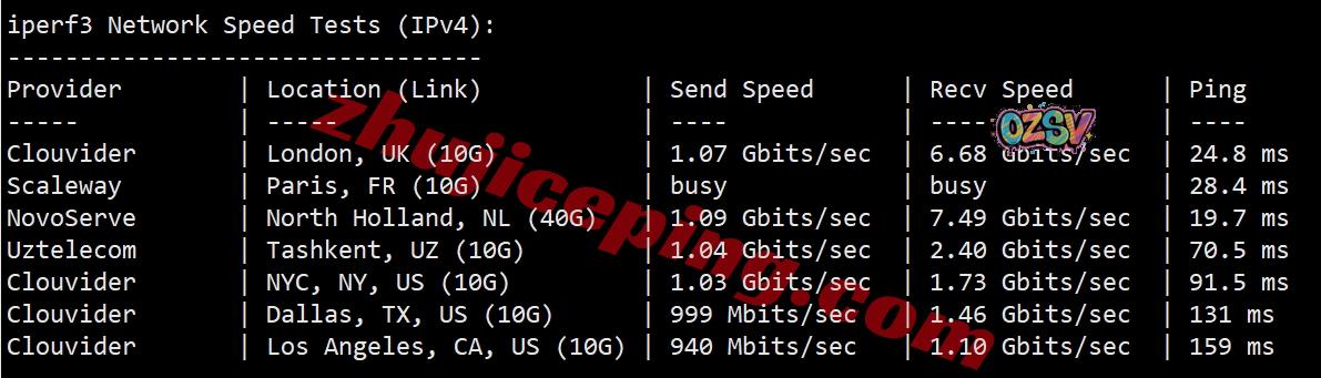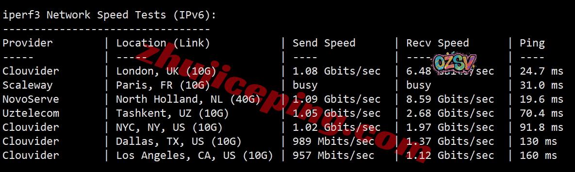 还是iperf3,IPv6环境下,还是几个欧美节点,大致数据: