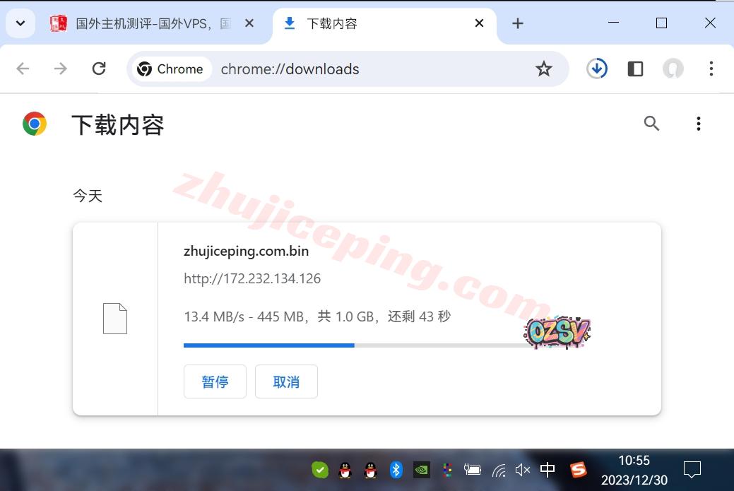 存放在测试晕服务器上的文件,广州联通,家宽,直接用浏览器下载,大致速度: