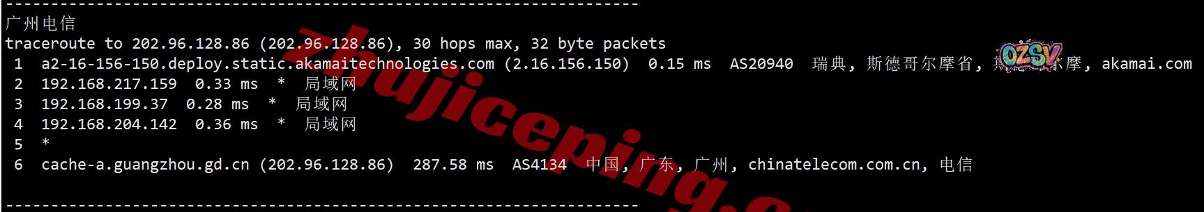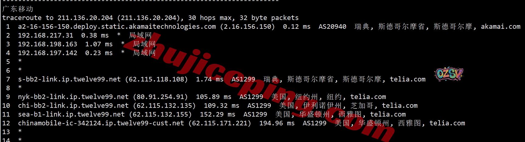 广州方向:走telia直接去了美国东海岸然后一路去西海岸的西雅图,从移动与telia在西雅图的peer出来直连回国