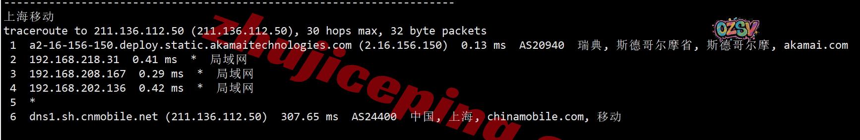 移动去程:直连移动德国法兰克福节点然后走level3经过法国去瑞典