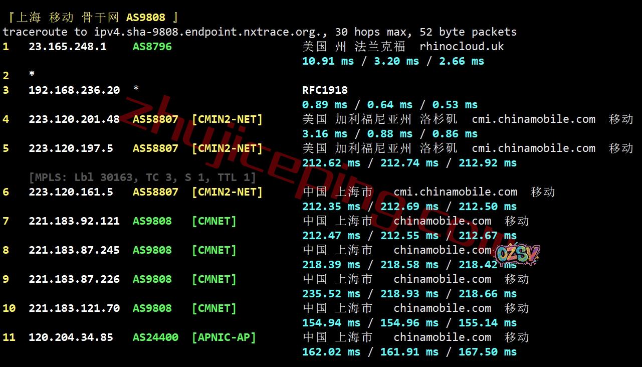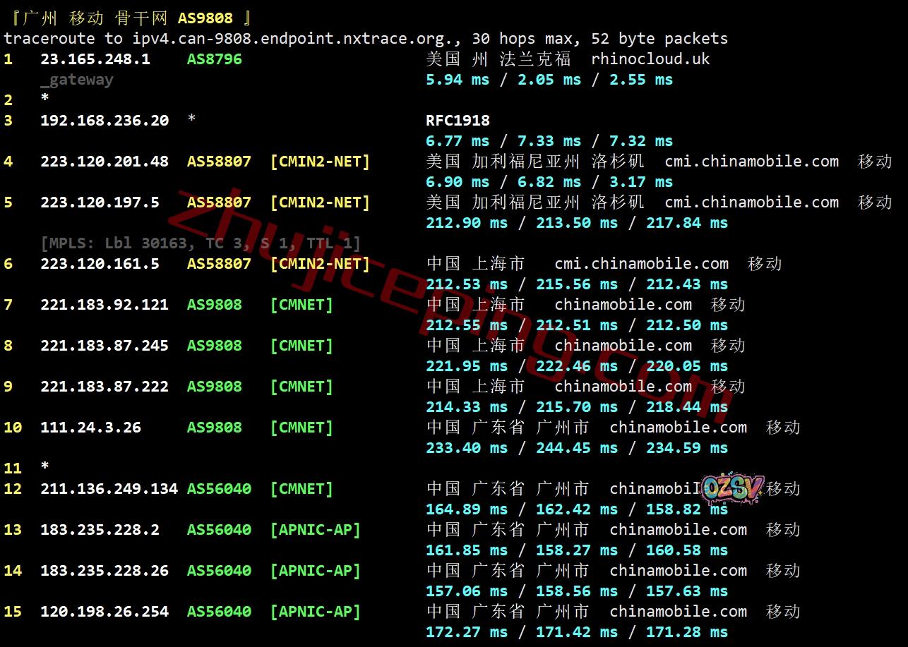 移动回程:强制走自己的AS58807(也就是高端CMIN2)回国