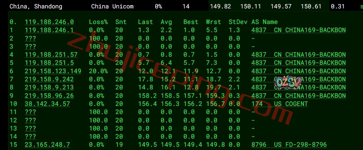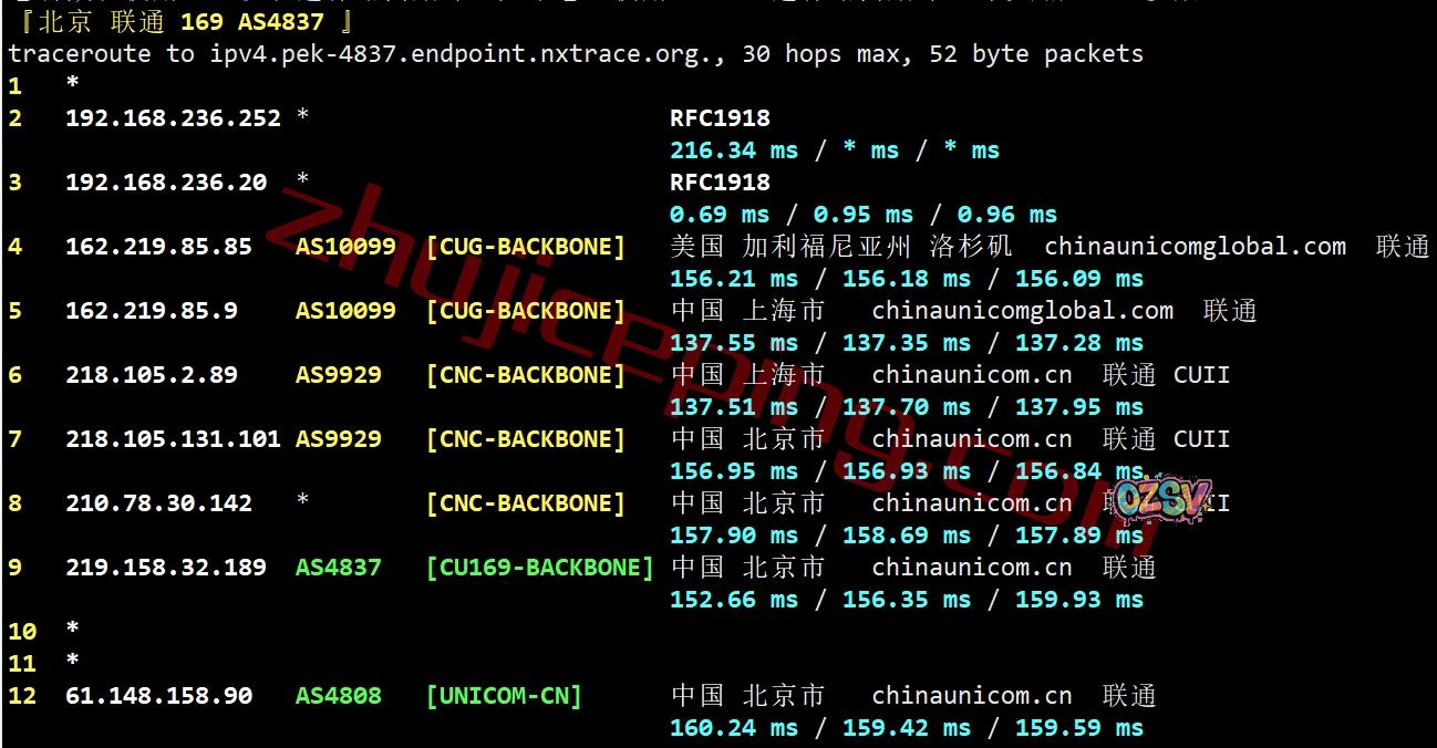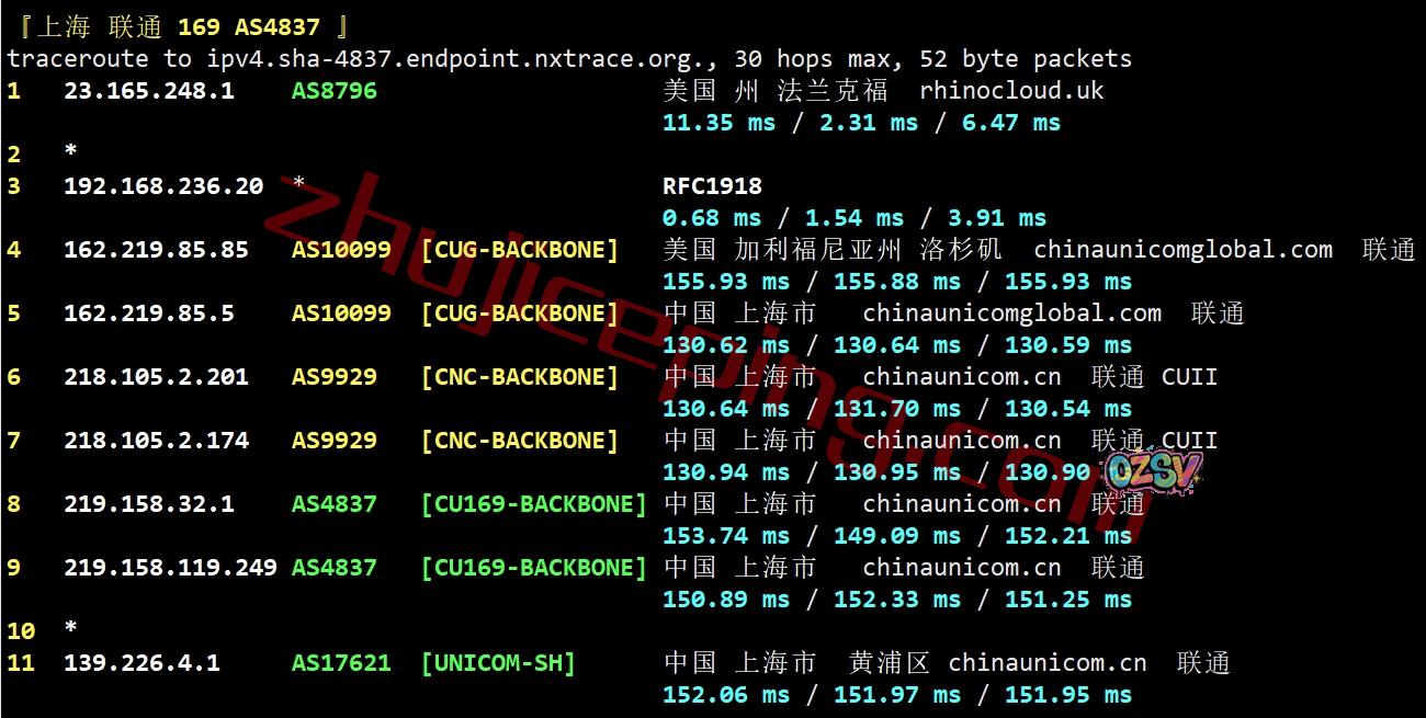 联通回程:走自己的AS9929链路回国