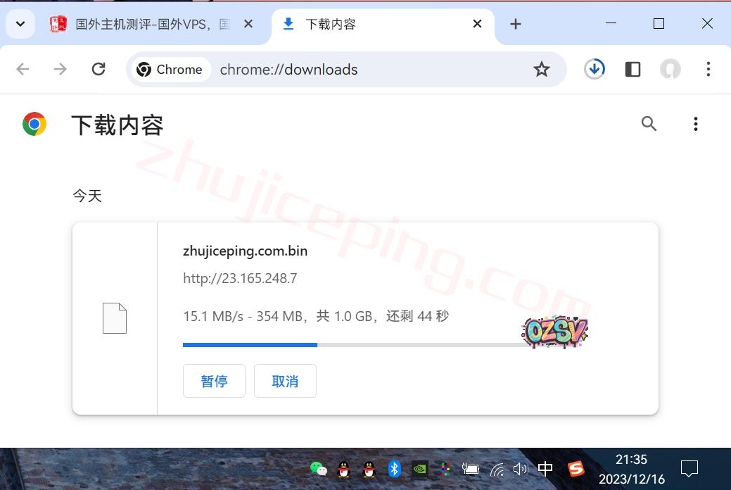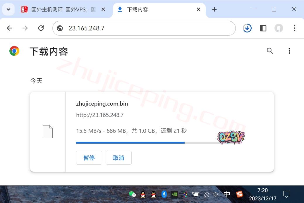 存放在测试VPS上面的文件,广州联通家宽,直接浏览器下载,大致速度: