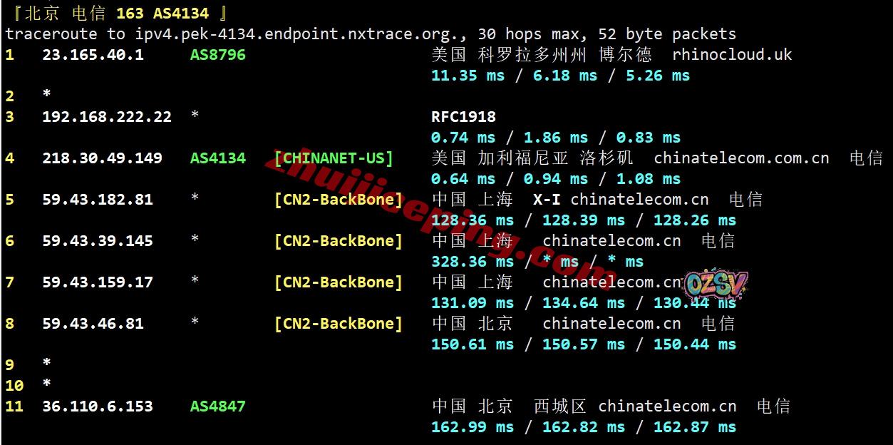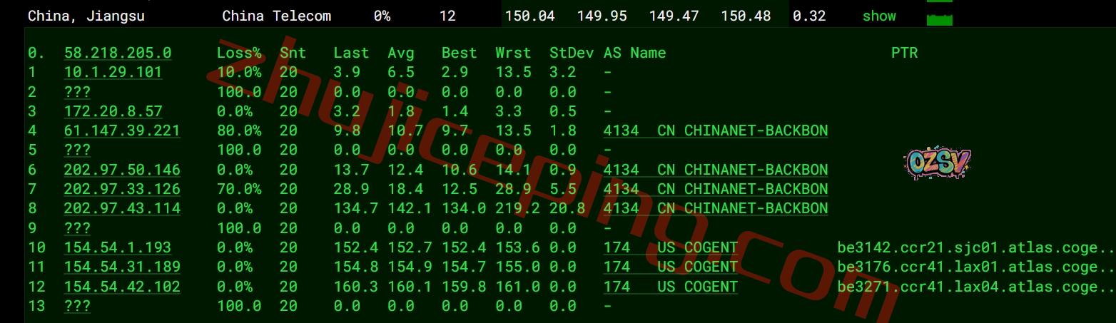 电信去程:直连电信洛杉矶节点,然后接cogent去机房