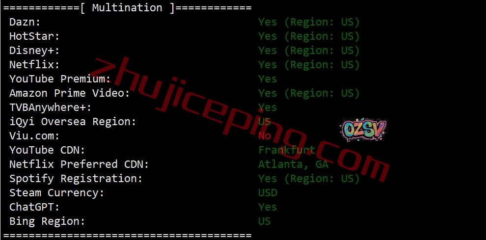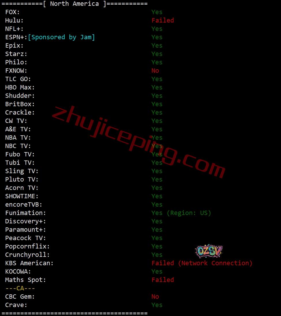 部分流媒体解锁测试: