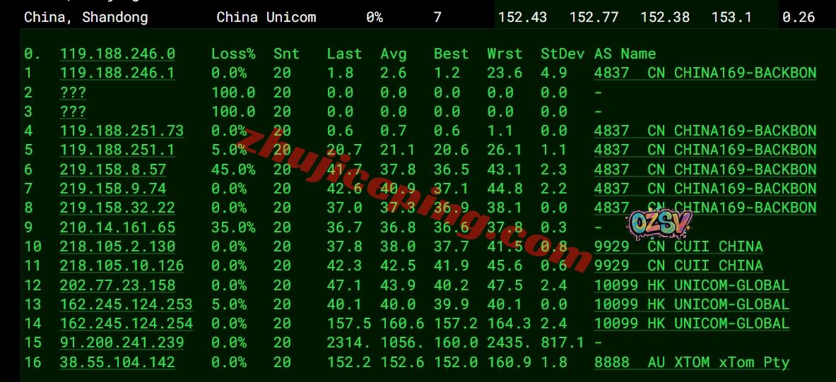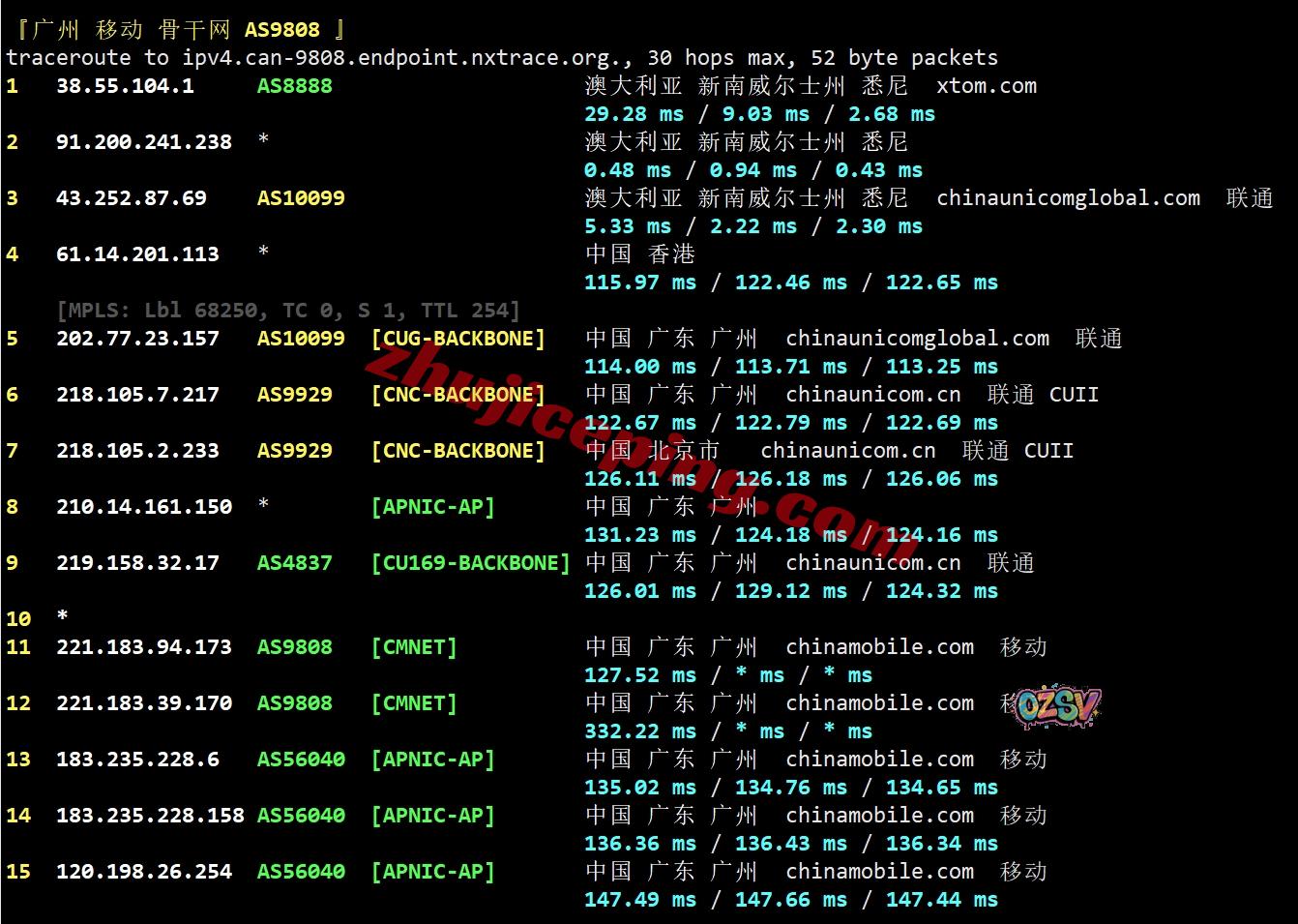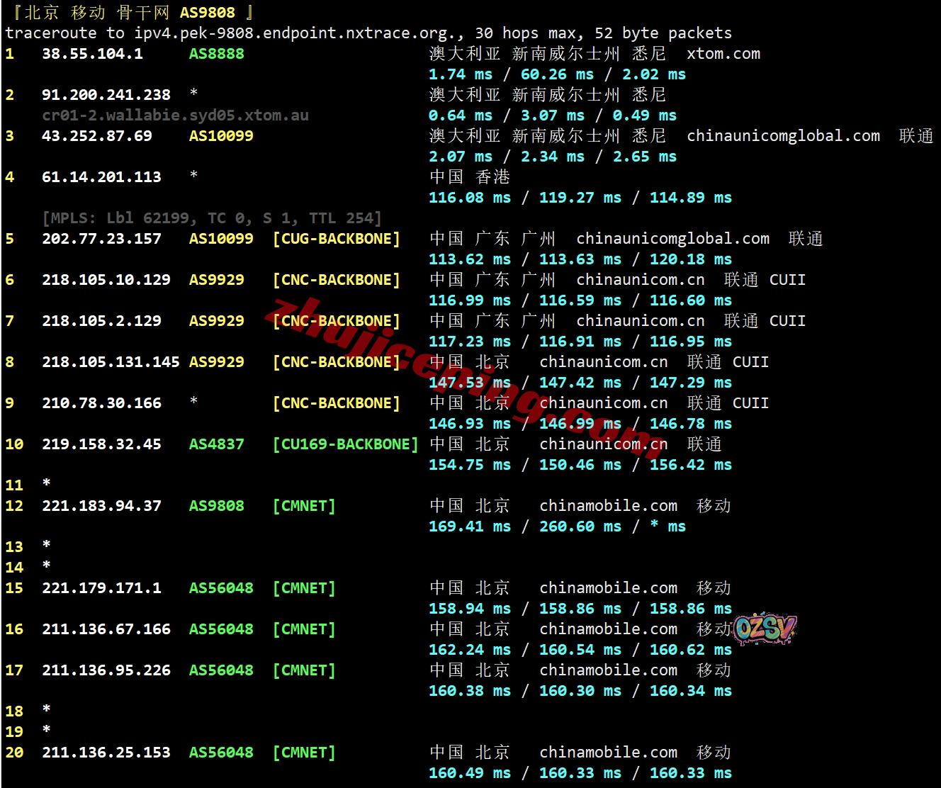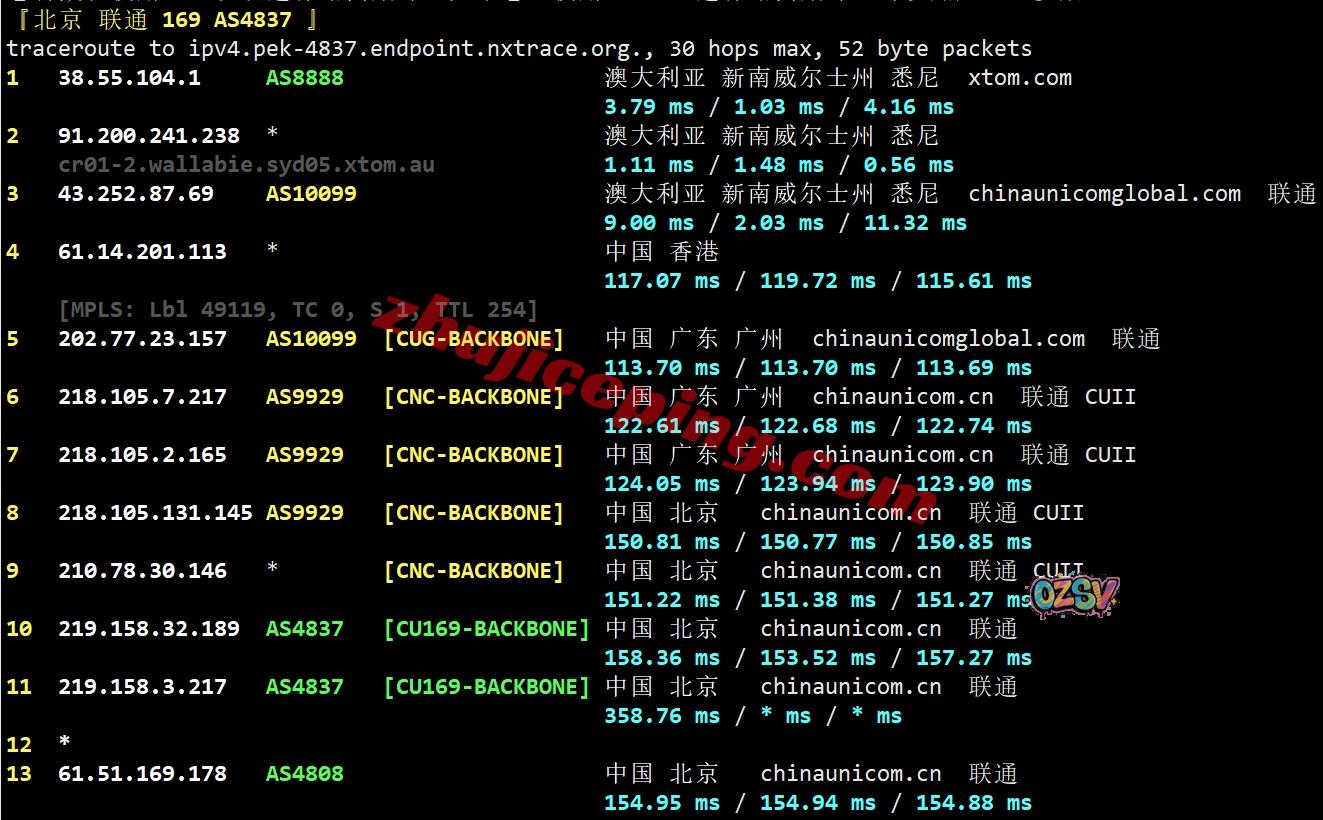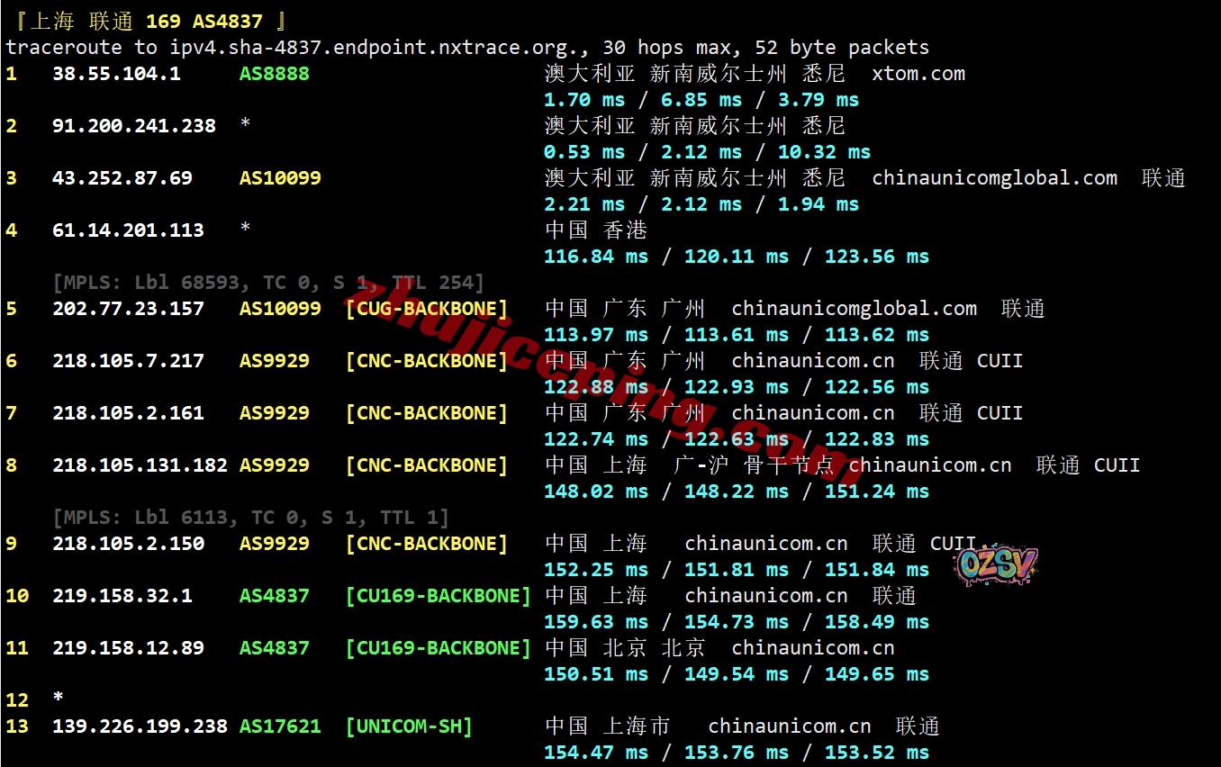 网络方面,电信去程绕道了美国,联通和移动都是从香港去澳大利亚;三网回程全部都是强制走联通AS9929高端网络回国。