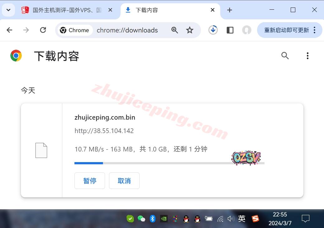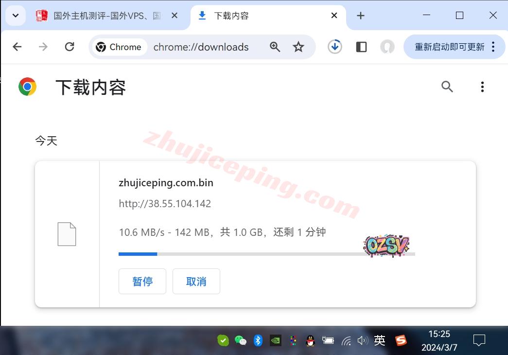 存放在测试VPS上的文件,广州联通家宽用Chrome下载文件,大致下载速度: