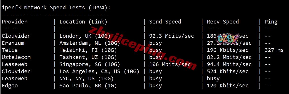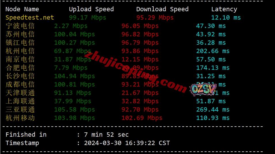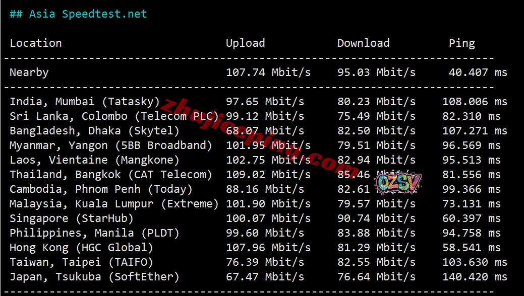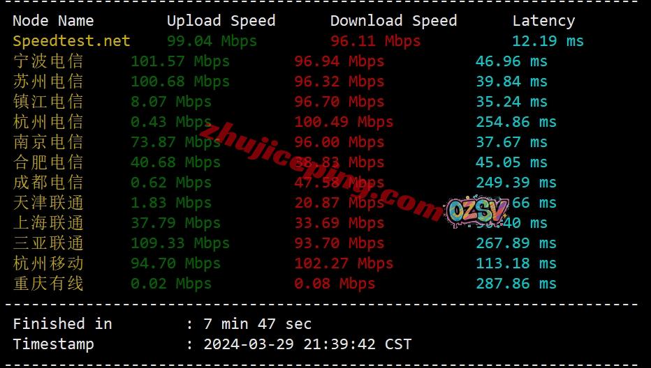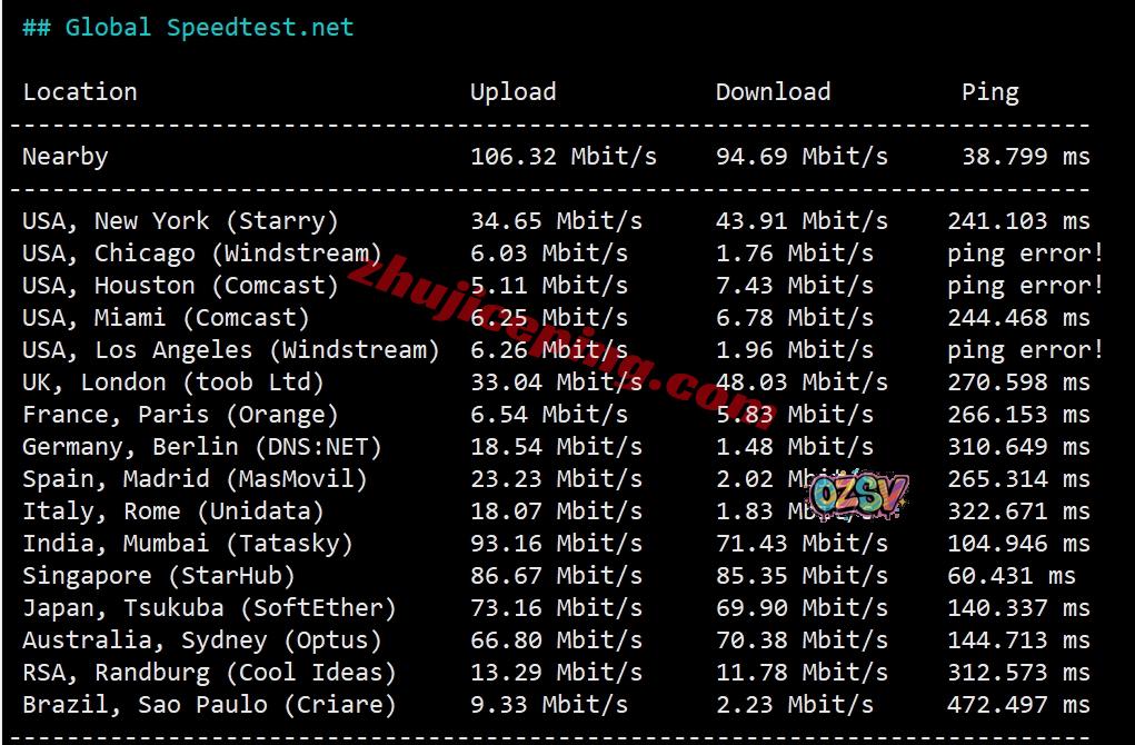 speedtest.net部分国际节点,上下带宽测试大致结果: