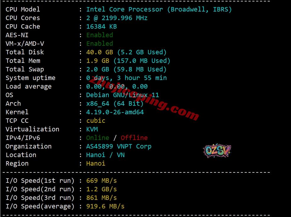 KVM虚拟,纯SSD阵列,100Mbps带宽,不限制流量,自带一个IPv4(可选ISP IP),可选CMC Hanoi或者VNPT Hanoi – ISP IP线路