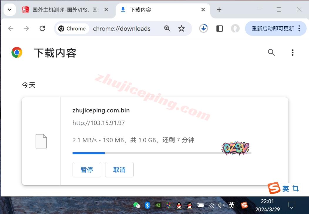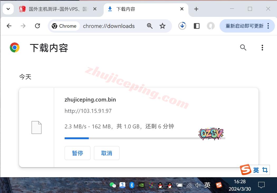 存放在测试VPS上的文件,广州联通直接用浏览器下载,大致下载速度: