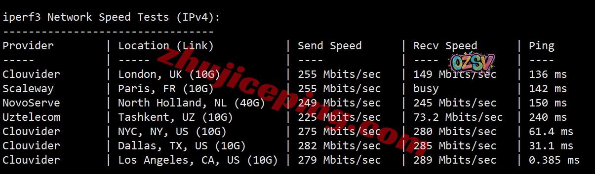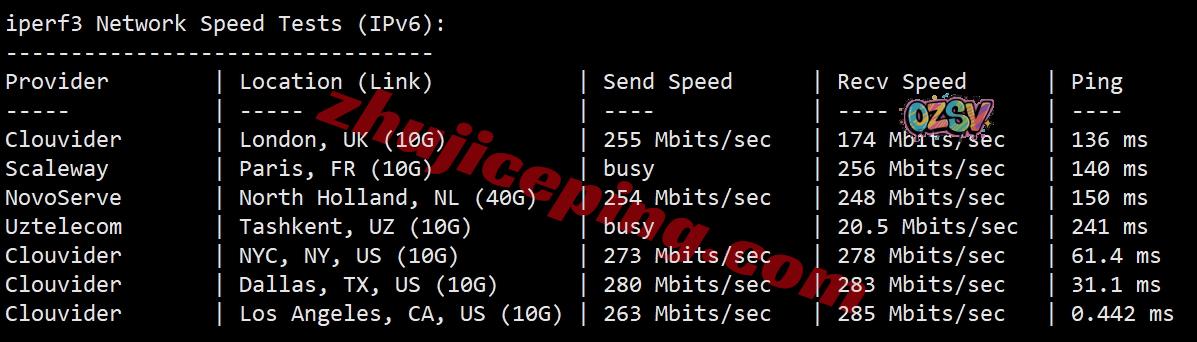 iperf3,在IPv6下几个欧美节点的测试数据如下: