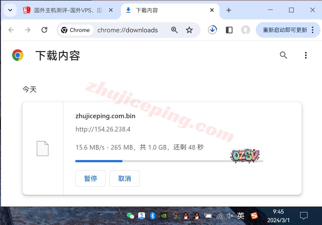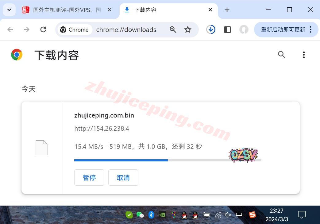 存放在测试VPS上面的文件,广州联通家宽直接浏览器下载,大致速度如下: