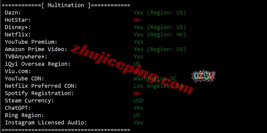 部分跨区域流媒体解锁测试,IP能解锁不少东西: