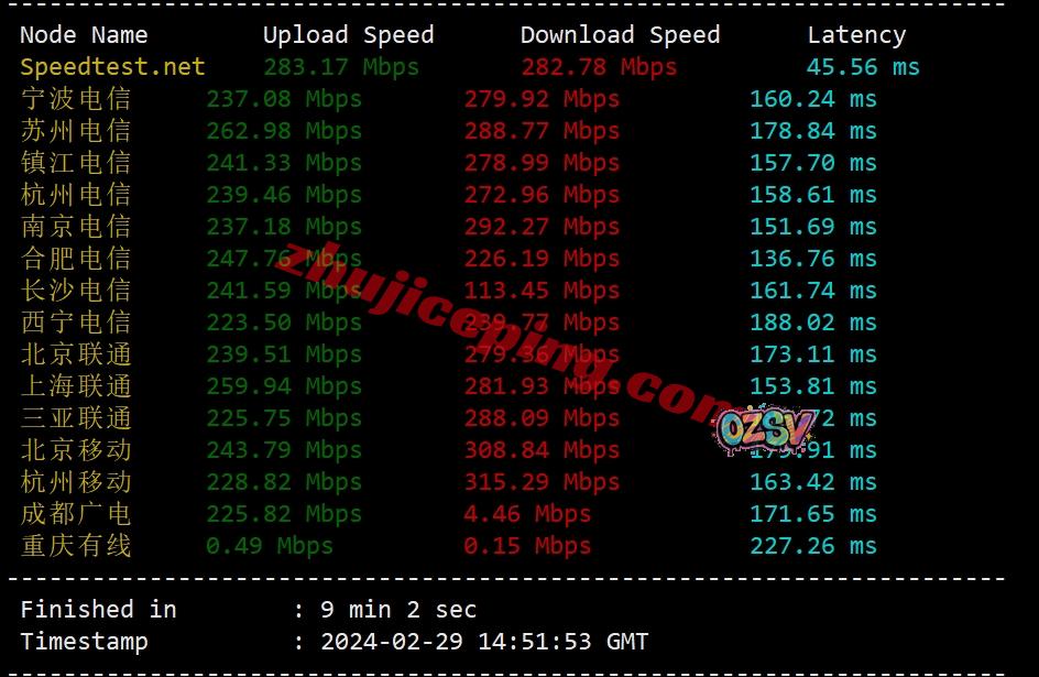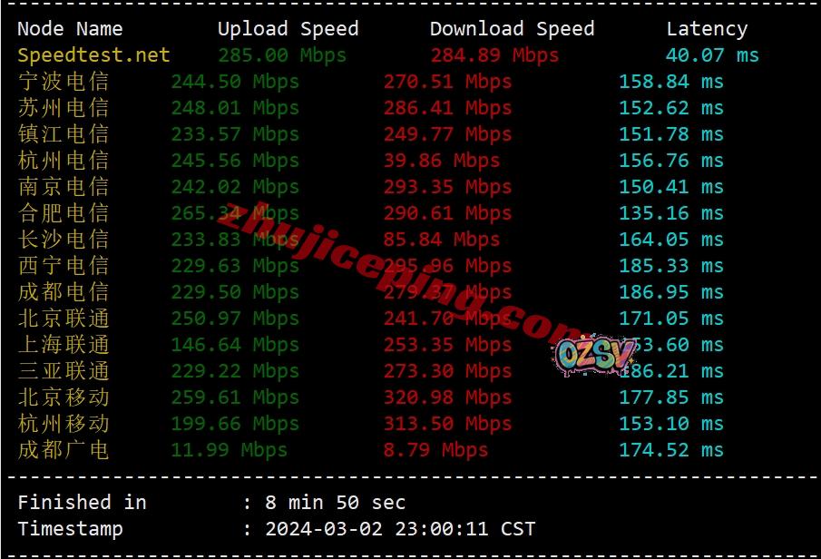 国内三网多节点测试带宽上下行,大致测试数据如下:
