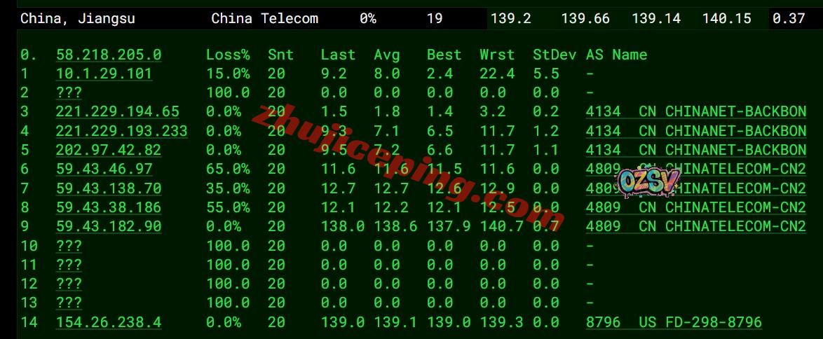 电信去程:走电信走自己的高端网CN2(AS4809)