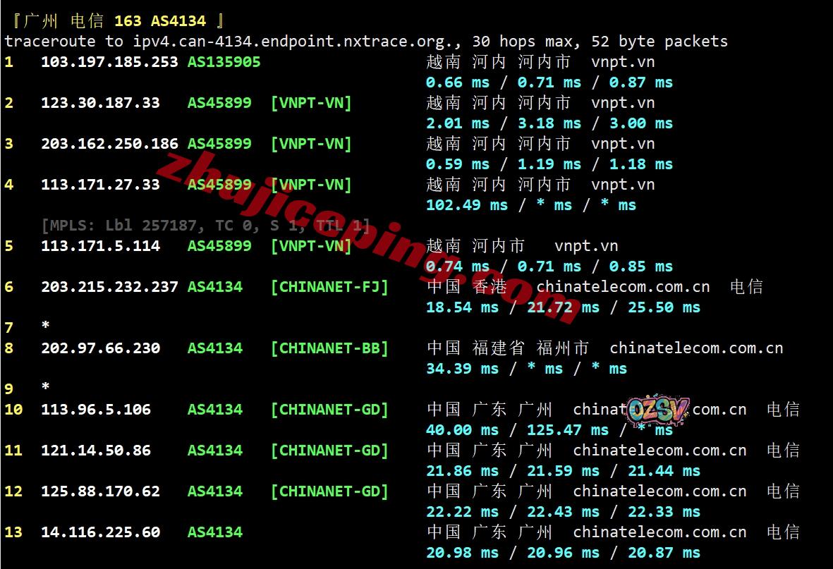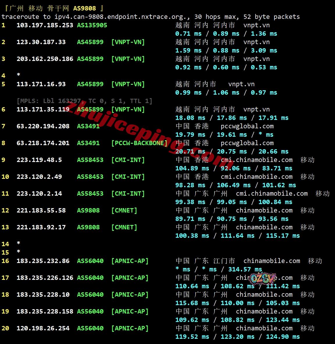 广州方向:越南vnpt接香港pccw转香港CMI直连回内地