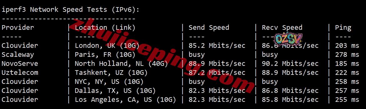 还是iperf3,但是切换到了IPv6环境下,大致数据: