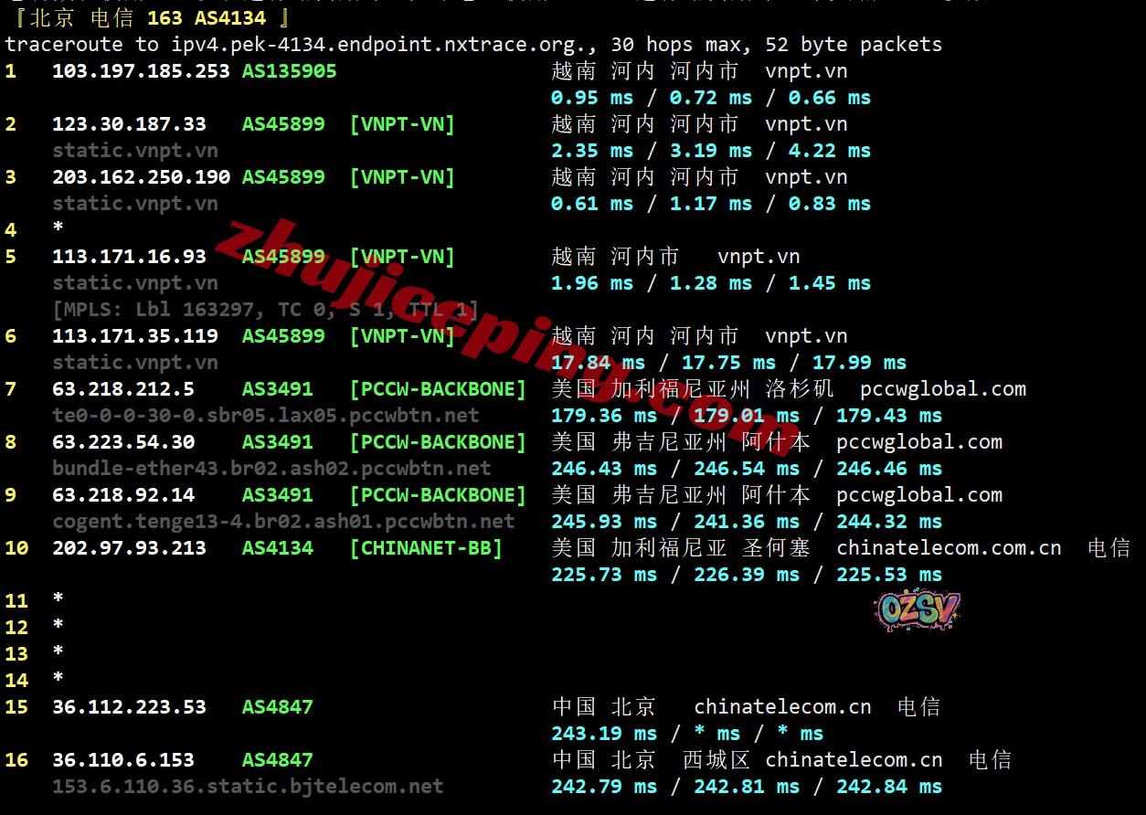 北京方向:越南河南vnpt对接美国洛杉矶pccw转电信洛杉矶节点然后直连回国