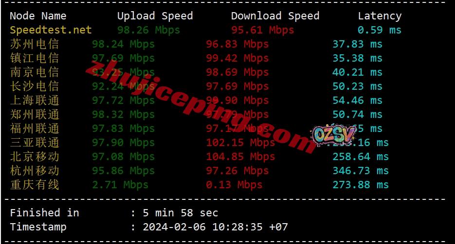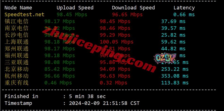 白天,我们用国内三网多节点跑一下带宽上下行测试,大致数据如下: