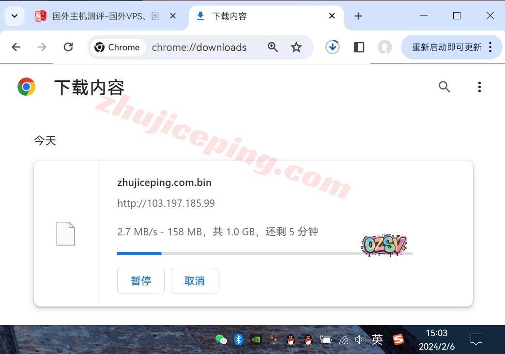 存放在测试vps上的文件,广州联通家庭宽带,直接用浏览器下载看速度: