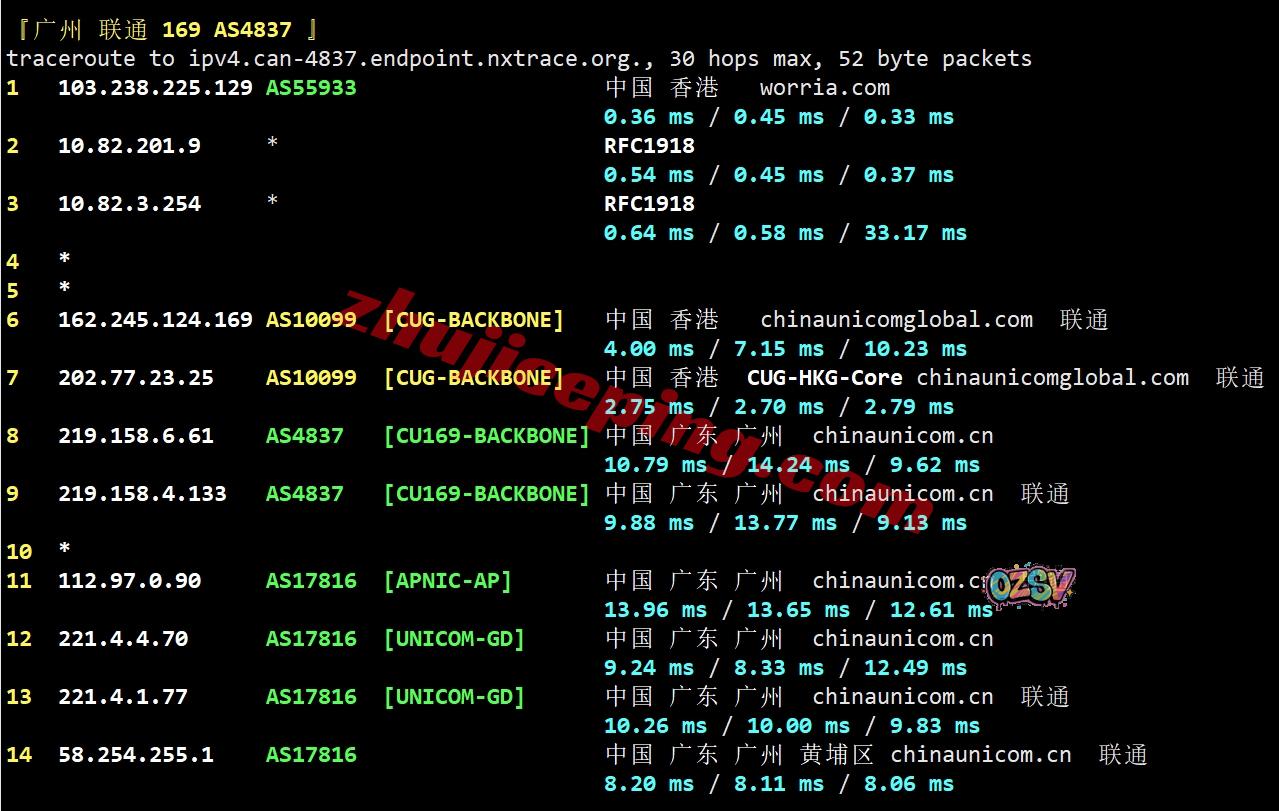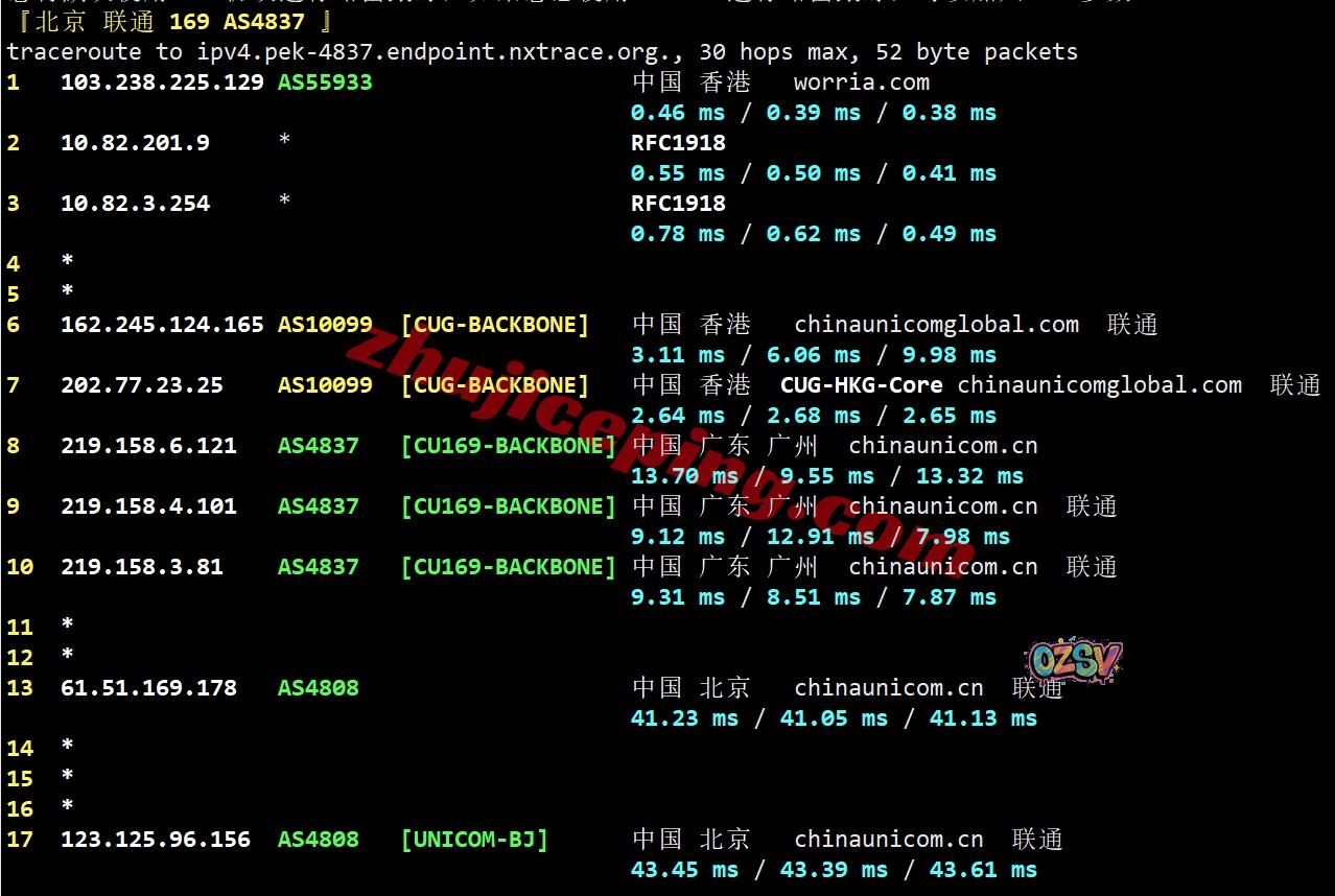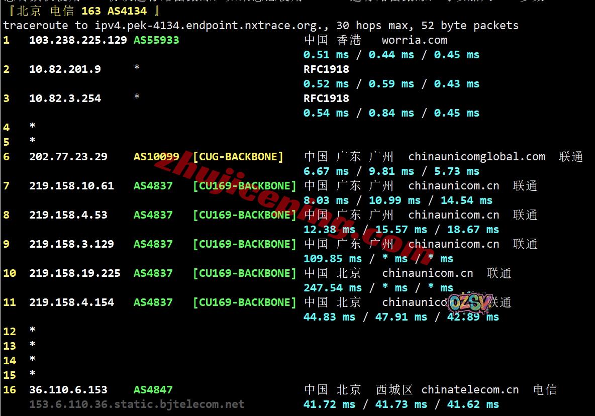 网络方面,三网去程直连,回程电信和联通都是强制走AS4837回来,移动回程走自己的CMI直连回来…