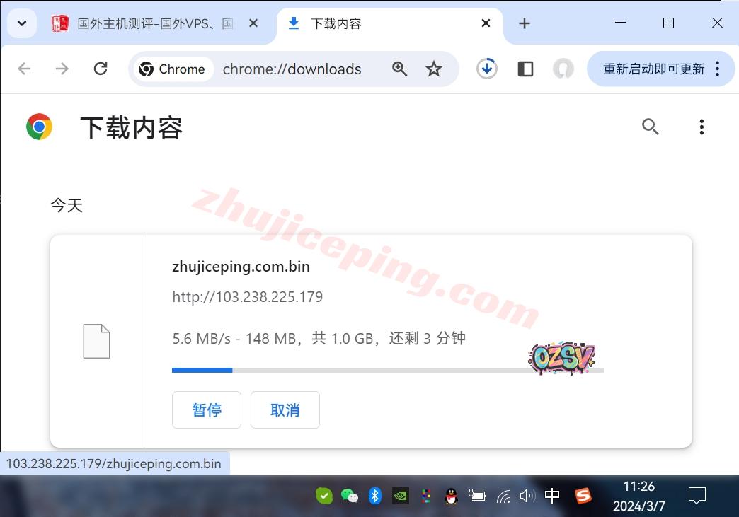 存放在测试vps上面的文件,广州联通家宽直接浏览器下载, 大致数据: