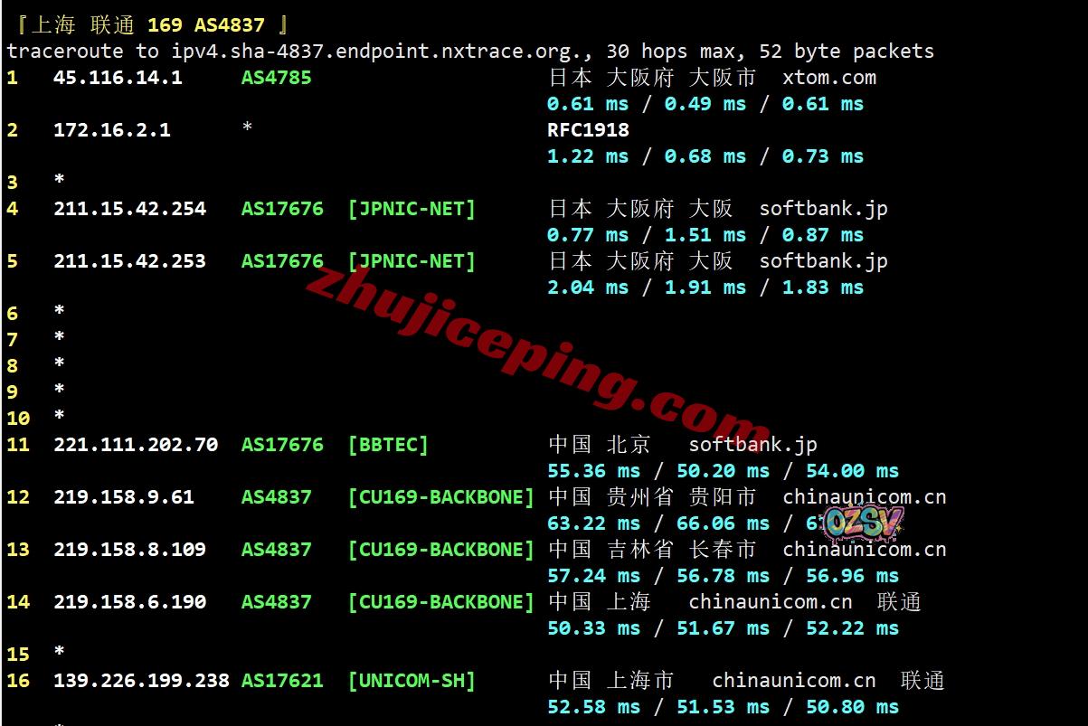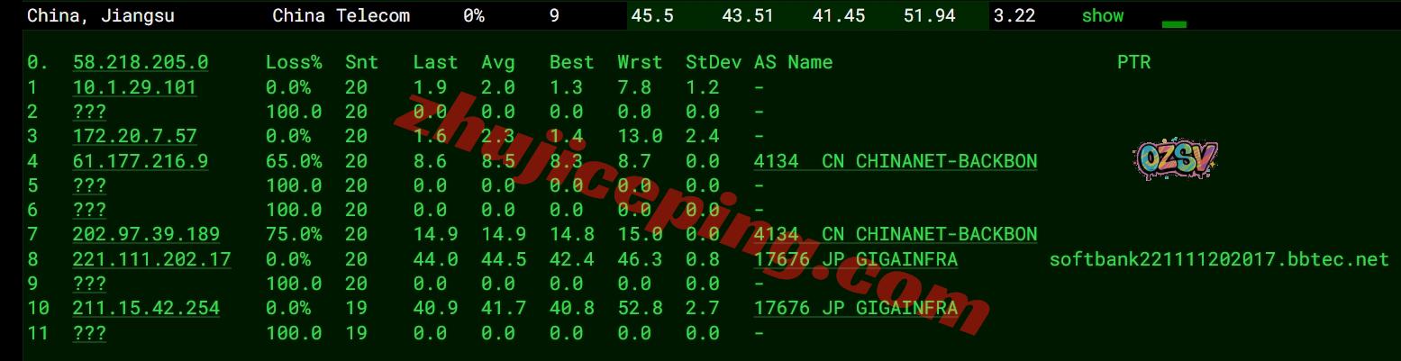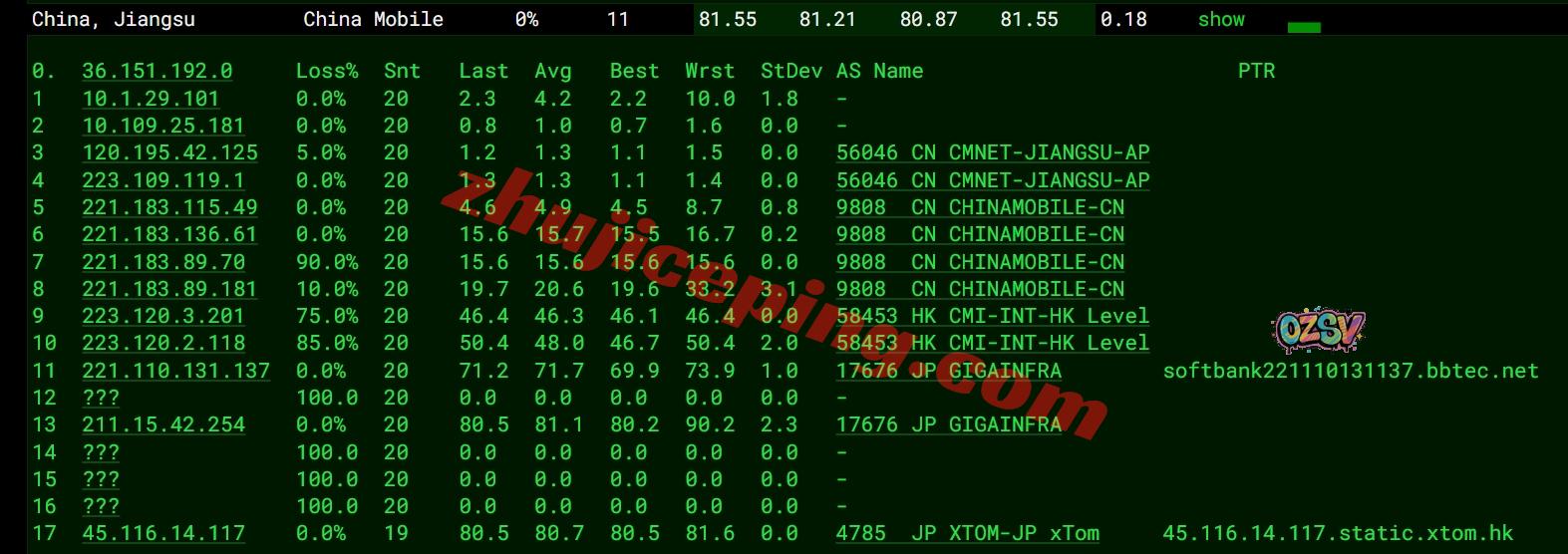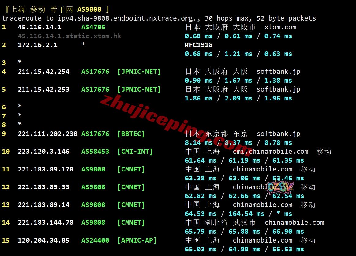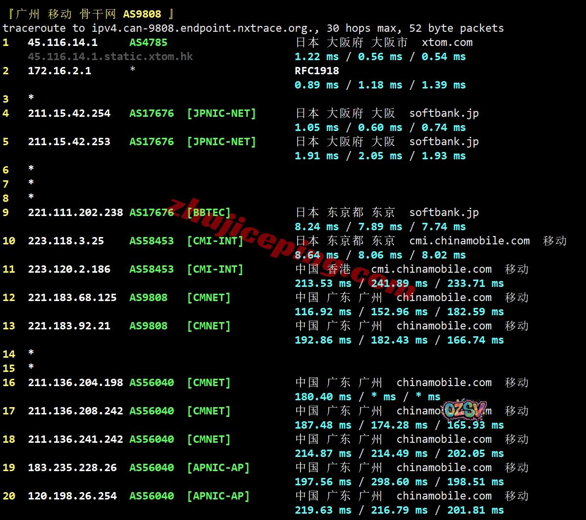 网络方面,几乎全部都是软银线路,去程和回程都是,唯一有一点就是移动回程的广州方向走的是CMI直连;整体来说网络算是非常不错的,值得试试看。