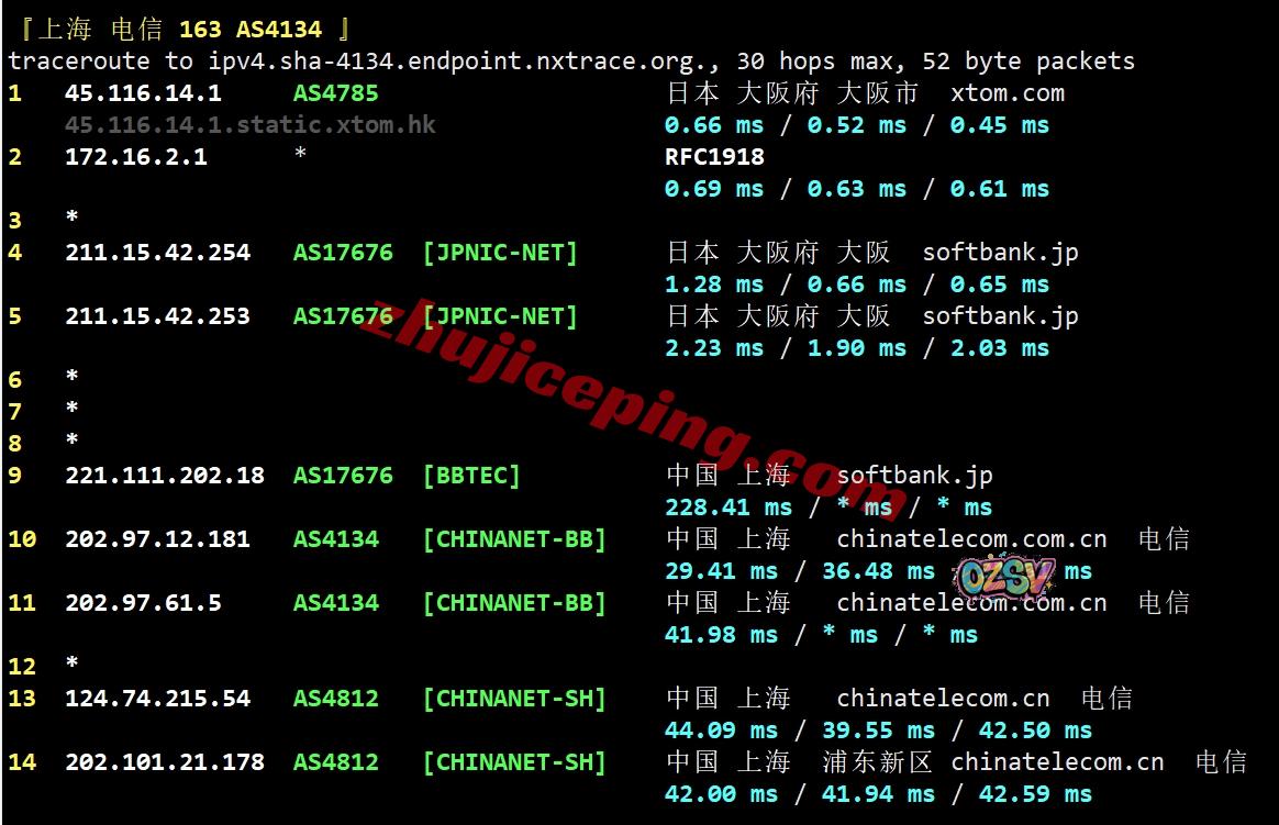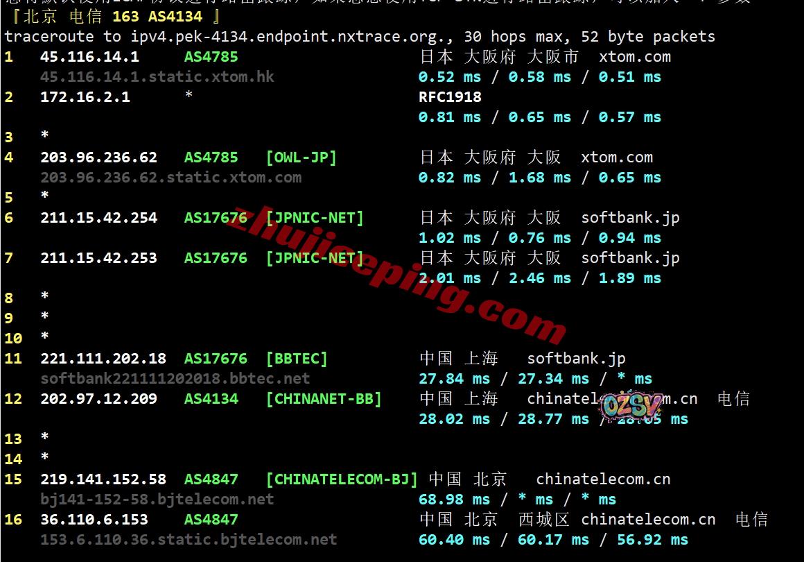 电信去程:骨干网接软银直接去日本