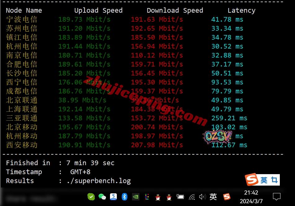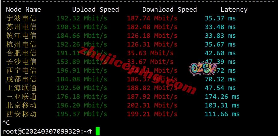 国内三网多节点的带宽上下行测试数据:
